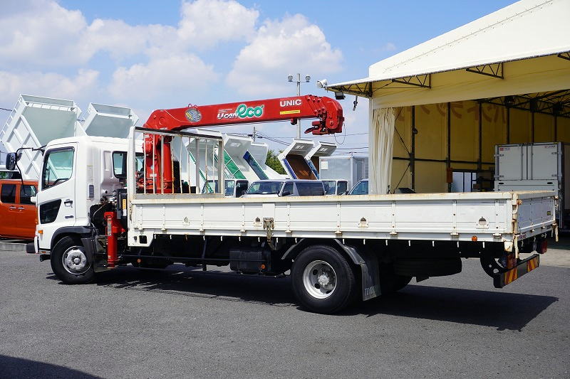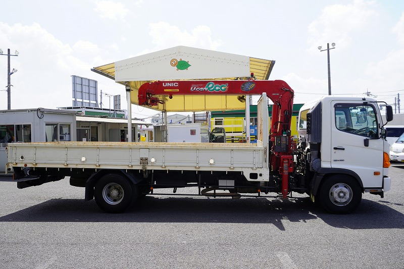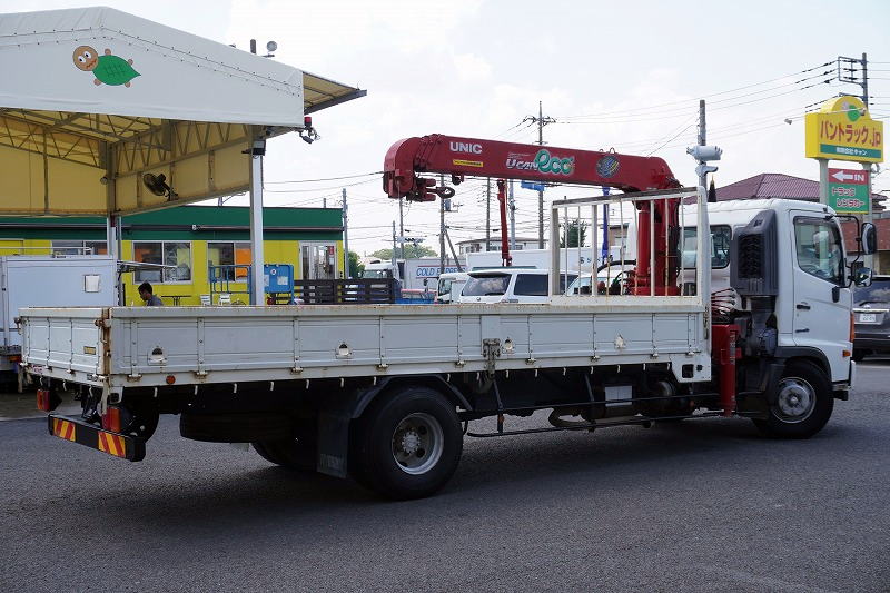 在庫No.C-0994 レンジャー 4トン 「標準幅 ベッドレス」 4段クレーン 積載2650kg 古河ユニック製 5.4m長 ラジコン フックイン 2.93t吊 ロープ穴4対 鳥居下部鉄板張り 6速MT!