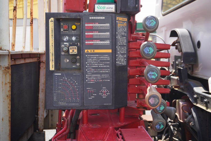 4t 標準巾 寝台無し 4段ブーム 2.65トン積 リモコン フック格納 2.9トン吊 フック穴 5400mm長 |