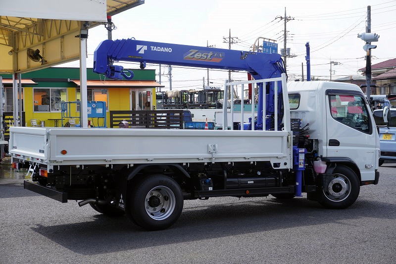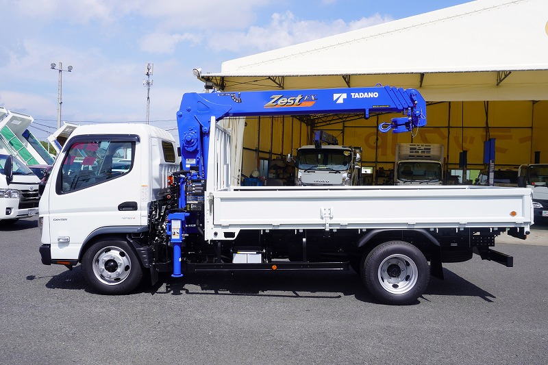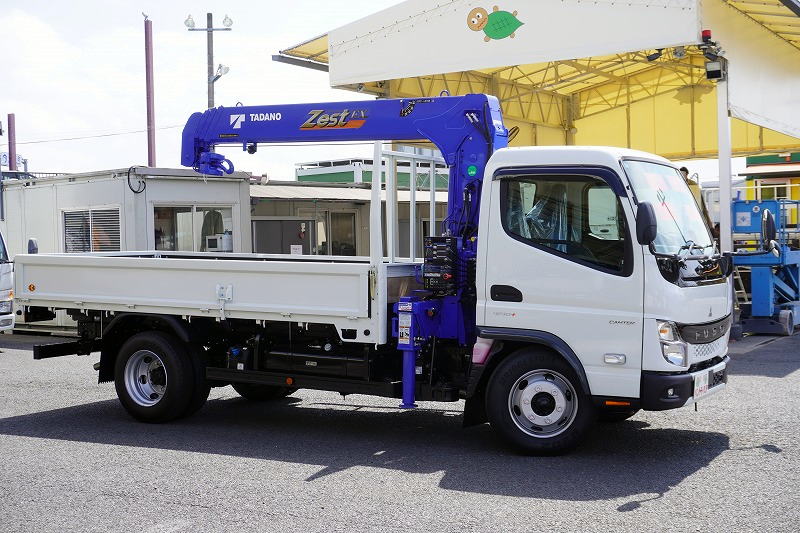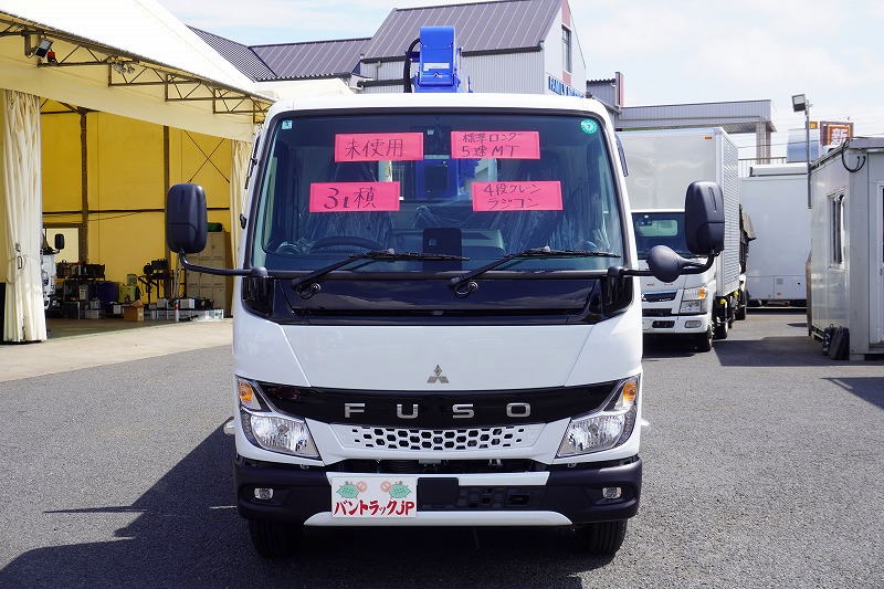 在庫No.K-0004 (未使用) キャンター 「標準幅 ロング」 4段クレーン 積載3000kg タダノ製 ラジコン フックイン 2.93t吊 セイコーラック 左電格ミラー 坂道発進補助 バックカメラ ETC フォグランプ スマートキー 衝突軽減ブレーキ 車線逸脱警報 5速MT! 車検「R9年5月まで!」