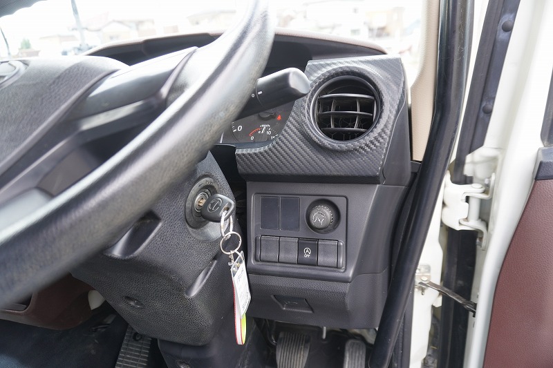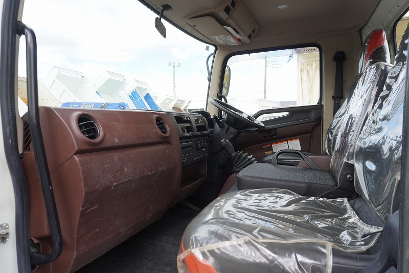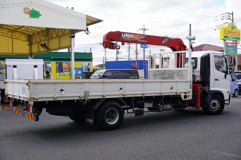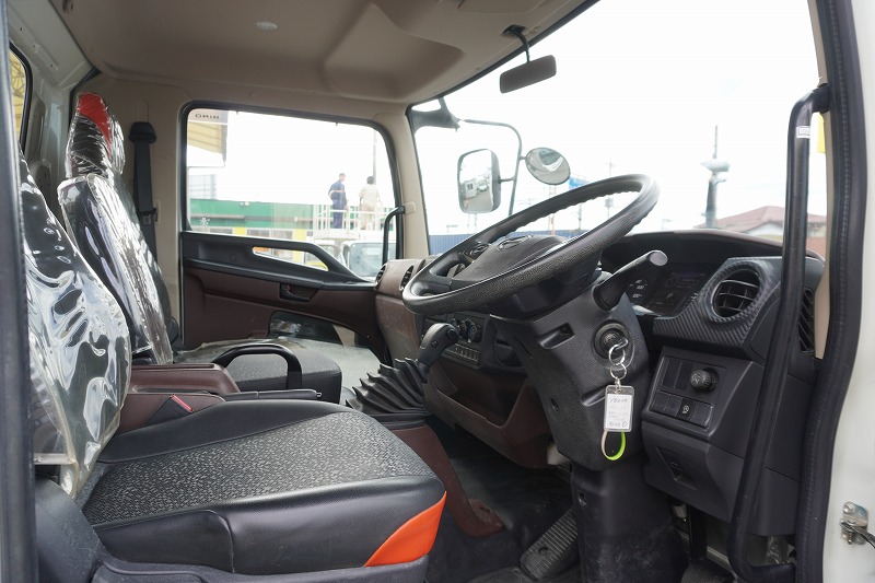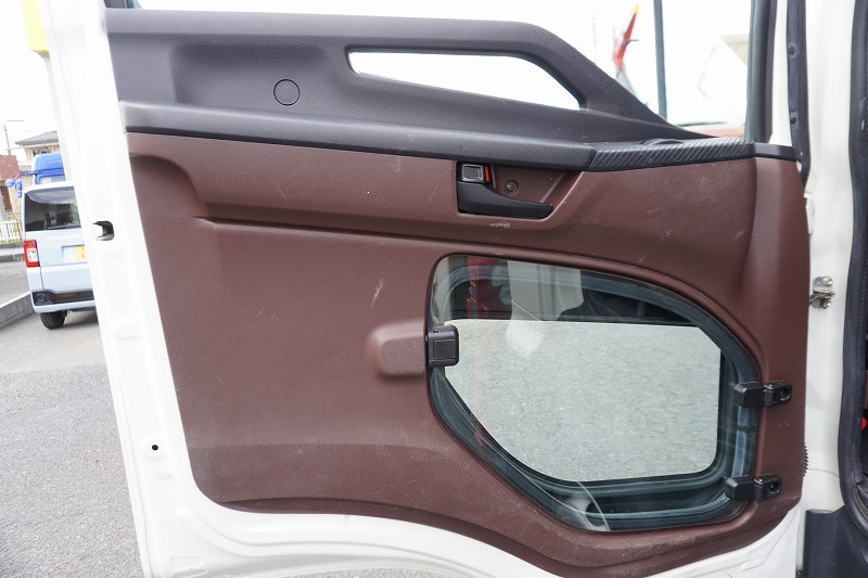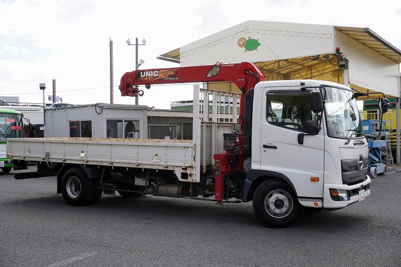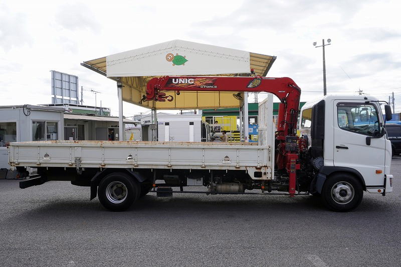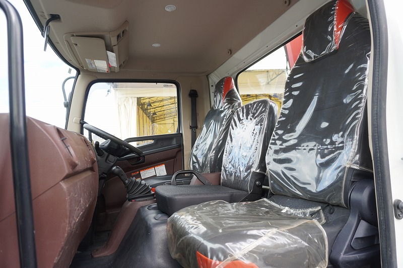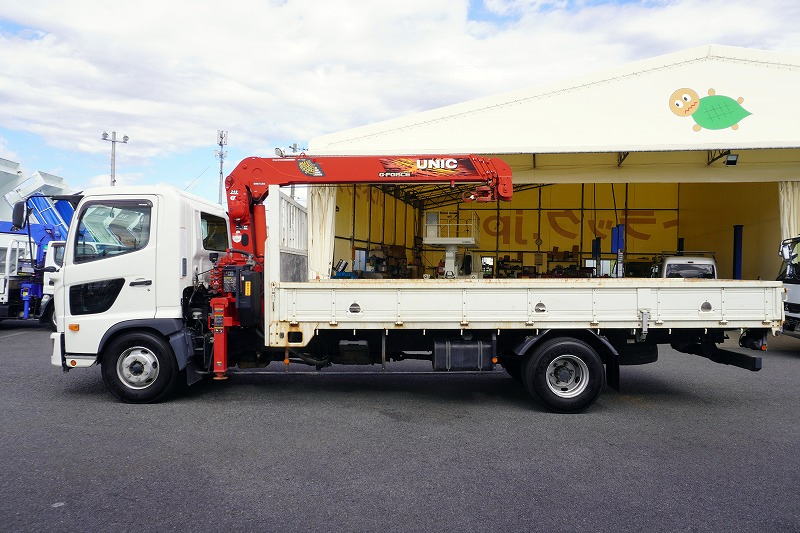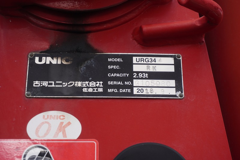在庫No.K-0034 レンジャー 4トン 「標準幅 ベッドレス」 4段クレーン 積載2450kg 古河ユニック製 5.4m長 ラジコン フックイン 2.93t吊 セイコーラック ロープ穴3対 ETC 衝突軽減ブレーキ 車線逸脱警報 AT車!