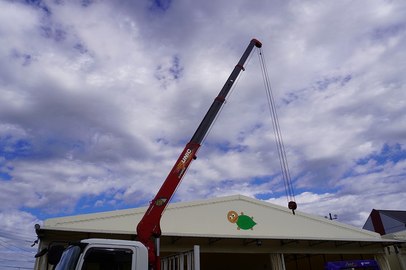 4t 標準巾 寝台無し 4段ユニック 2.45トン積 5400mm長 リモコン フック格納 2.9トン吊 EZラック フック穴 |