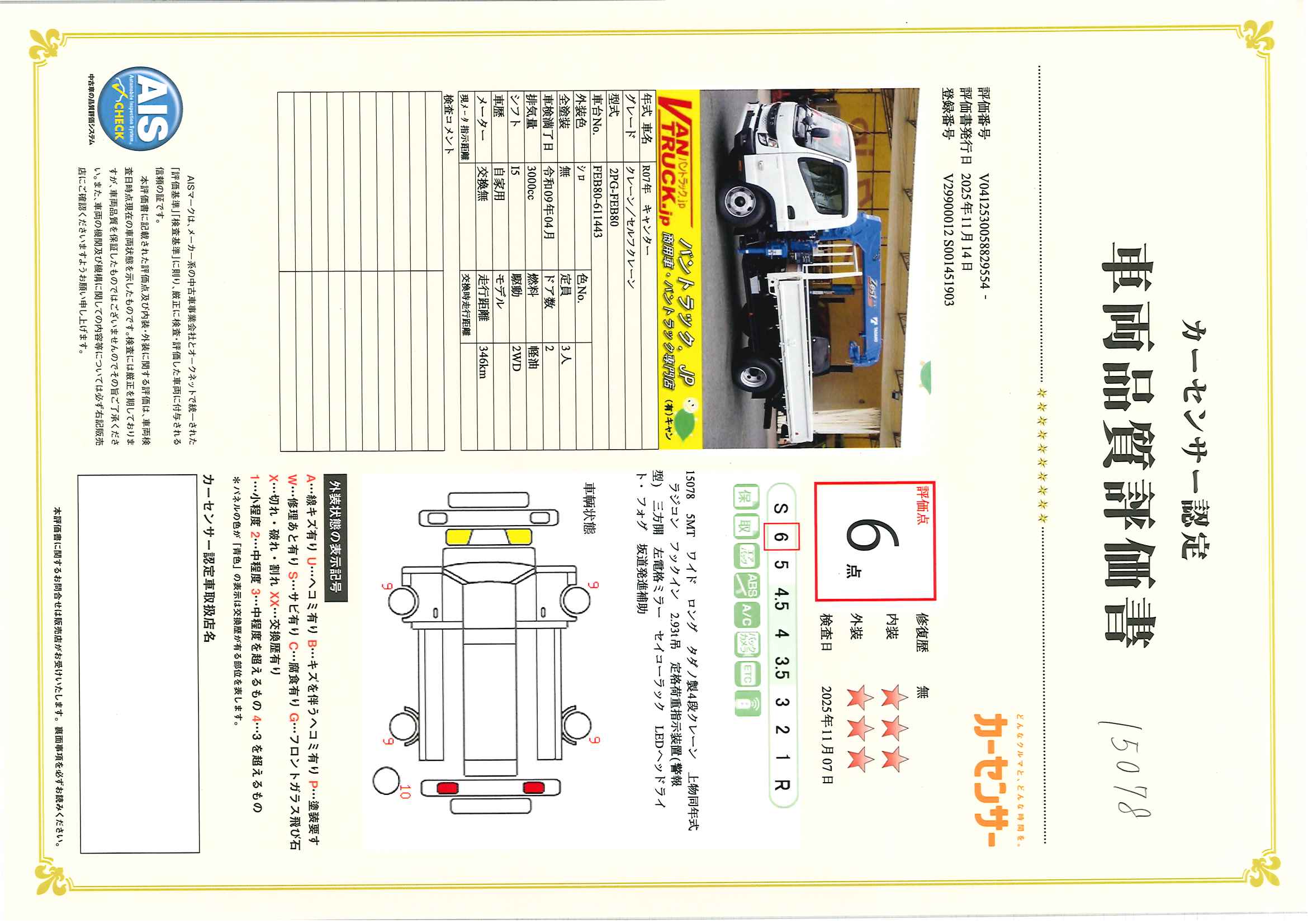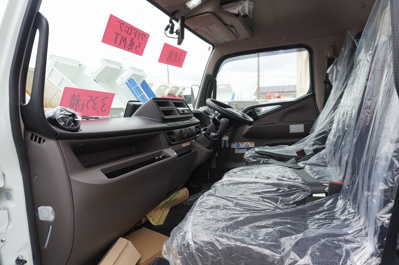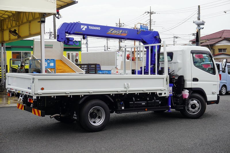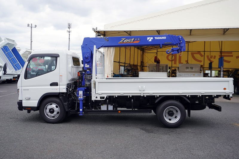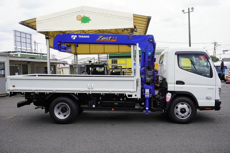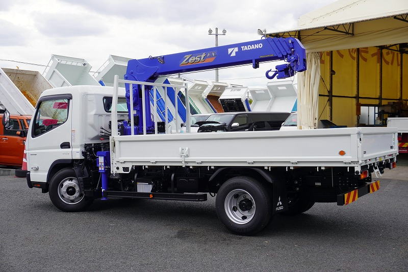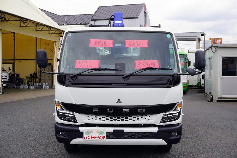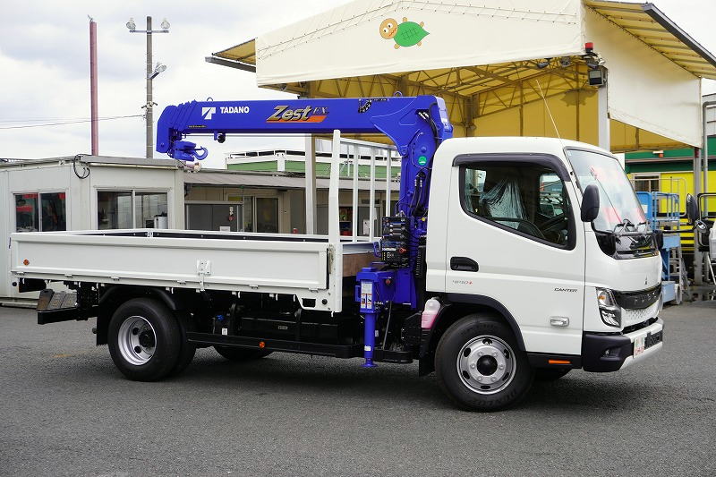 在庫No.K-0078 (未使用) キャンター 「ワイドロング」 4段クレーン 積載3350kg タダノ製 ラジコン フックイン 2.93t吊 バックカメラ ETC 坂道発進補助 左電格ミラー LEDヘッドライト&フォグランプ スマートキー 衝突軽減ブレーキ 車線逸脱警報 5速MT! 車検「R9年4月まで!」