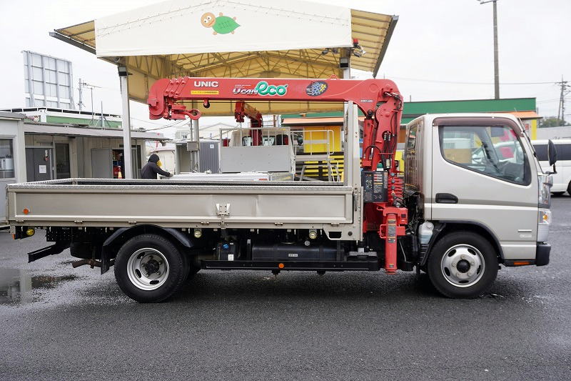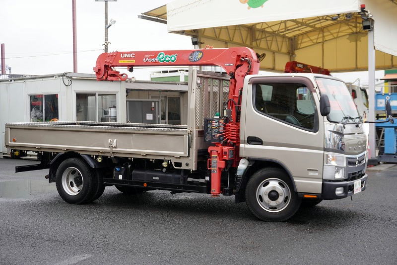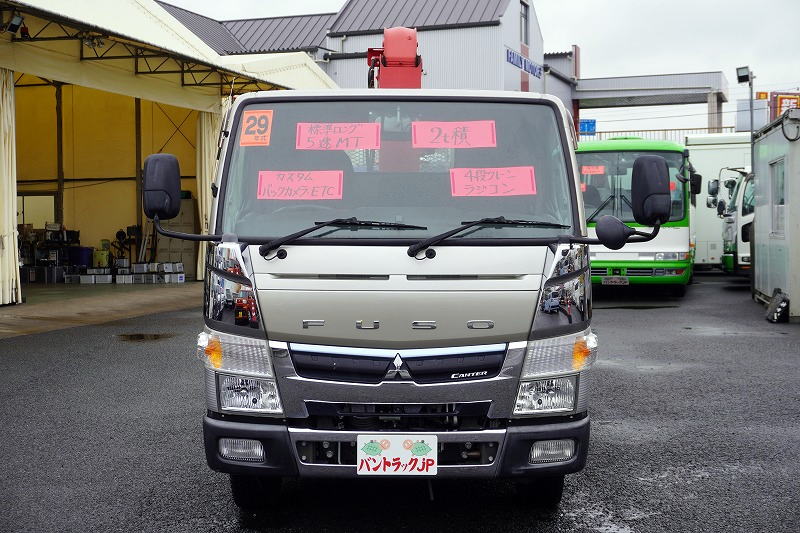 在庫No.K-0102 キャンター 「カスタム 標準幅 ロング」 4段クレーン 積載2000kg 古河ユニック製 ラジコン フックイン 2.63t吊 セイコーラック 鳥居工具箱&上部金網張り アオリ上部プロテクター付き 網工具入れ 左電格ミラー バックカメラ ETC フォグランプ キーレス HIDヘッドライト メッキパーツ 5速MT!