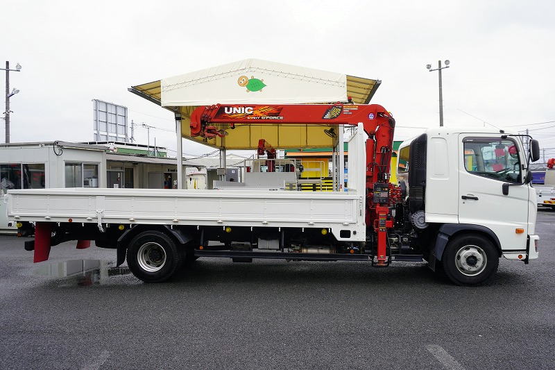 4t 標準巾 寝台付き 4段ユニック 2.4トン積 リモコン フック格納 2.9トン吊 5500mm長 内フック 鳥居エキスバンド張り 鳥居下部鉄板 |