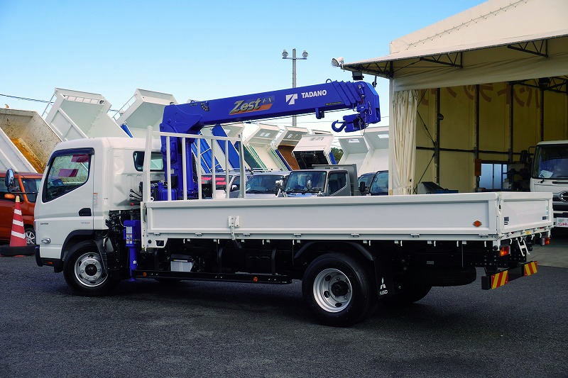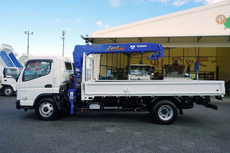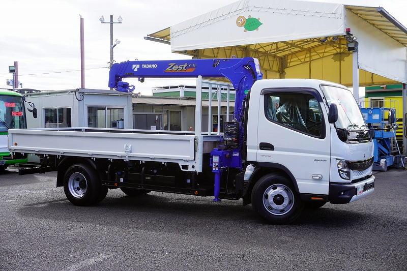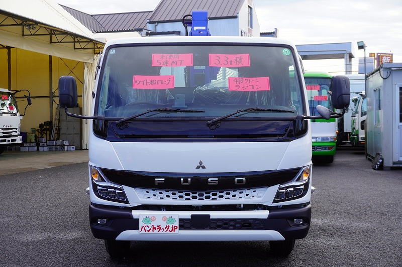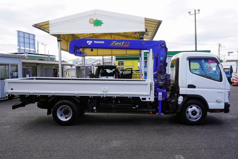 在庫No.K-0115 (未使用) キャンター 「ワイド超ロング」 4段クレーン 積載3300kg タダノ製 ラジコン フックイン 2.93t吊 バックカメラ 左電格ミラー LEDヘッドライト&フォグランプ スマートキー 衝突軽減ブレーキ 車線逸脱警報 5速MT! 車検「R9年6月まで!」