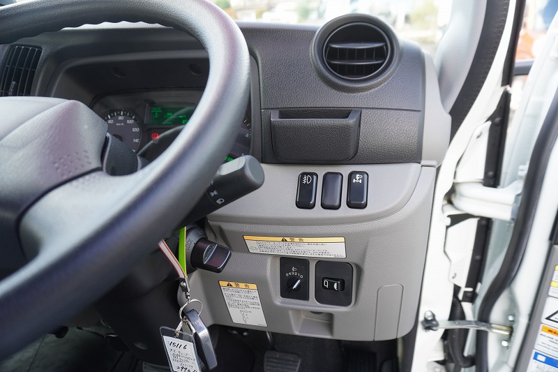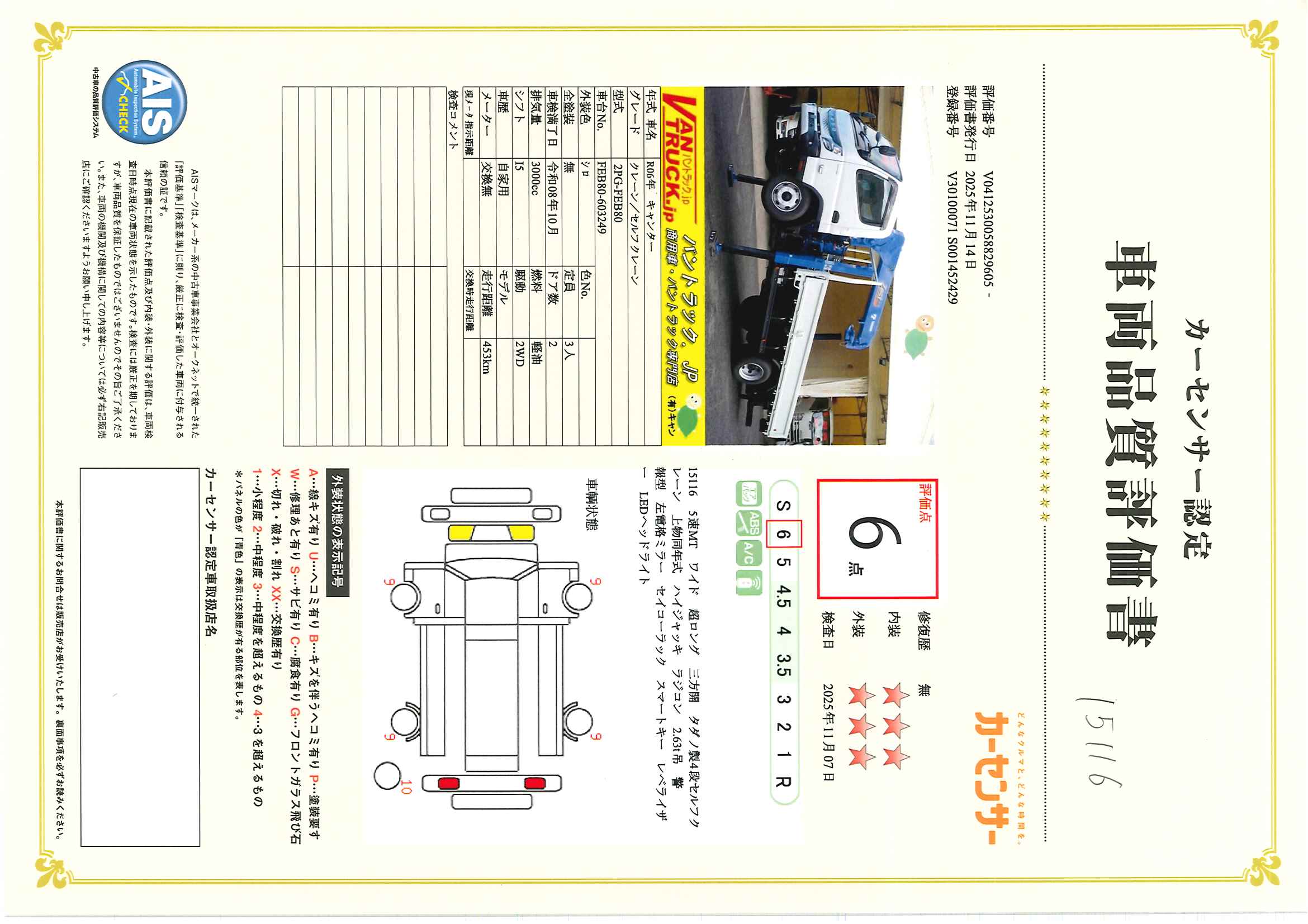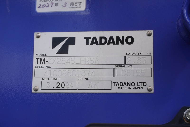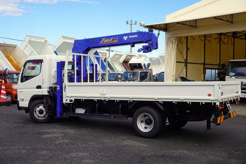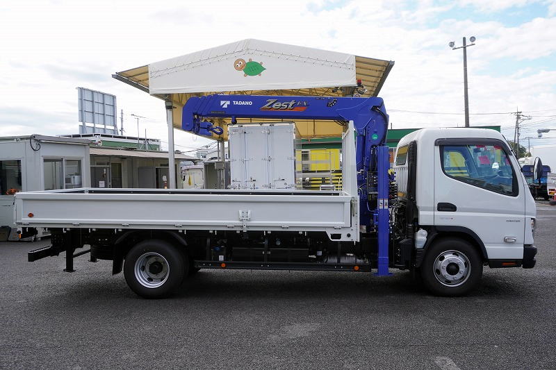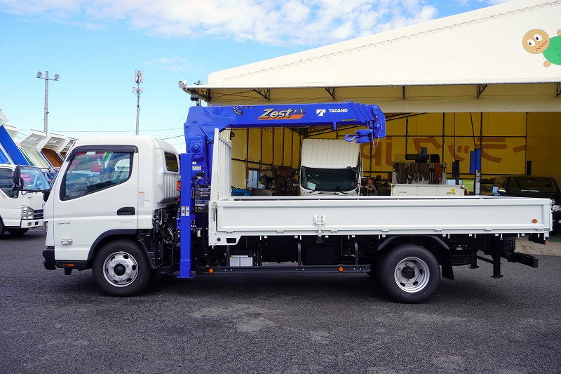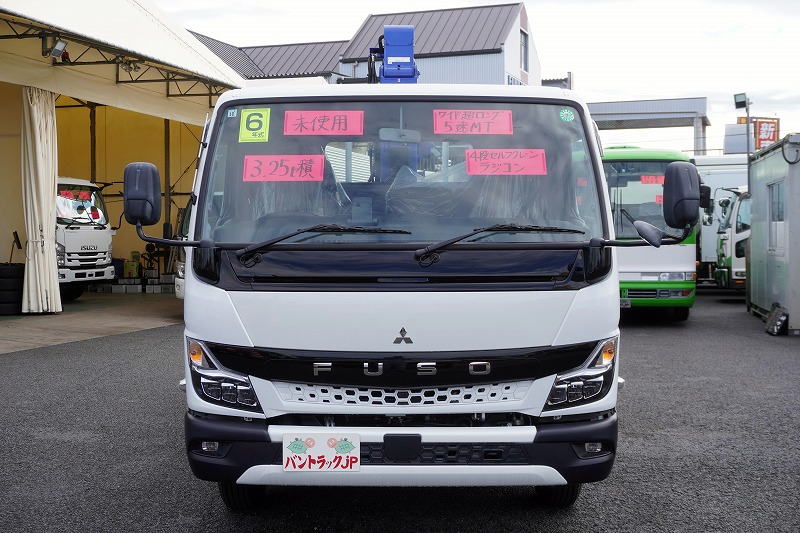 在庫No.K-0116 (未使用) キャンター 「ワイド超ロング」 4段セルフクレーン 積載3250kg タダノ製 ラジコン フックイン 2.63t吊 左電格ミラー LEDヘッドライト&フォグランプ スマートキー 衝突軽減ブレーキ 車線逸脱警報 5速MT! 車検「R8年10月まで!」