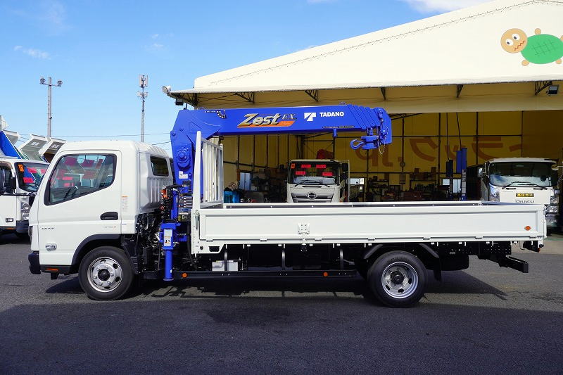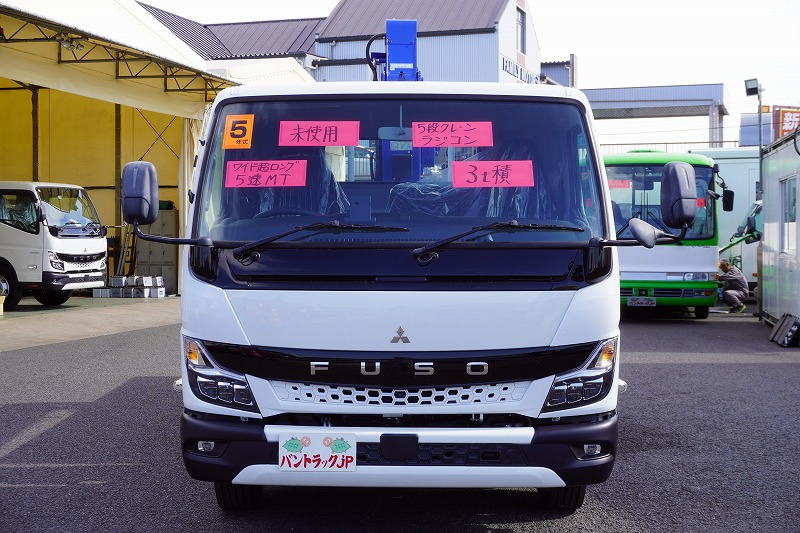 在庫No.K-0118 (未使用) キャンター 「ワイド超ロング」 5段クレーン 積載3000kg タダノ製 ラジコン フックイン 2.93t吊 左電格ミラー LEDヘッドライト&フォグランプ スマートキー 衝突軽減ブレーキ 車線逸脱警報 5速MT!