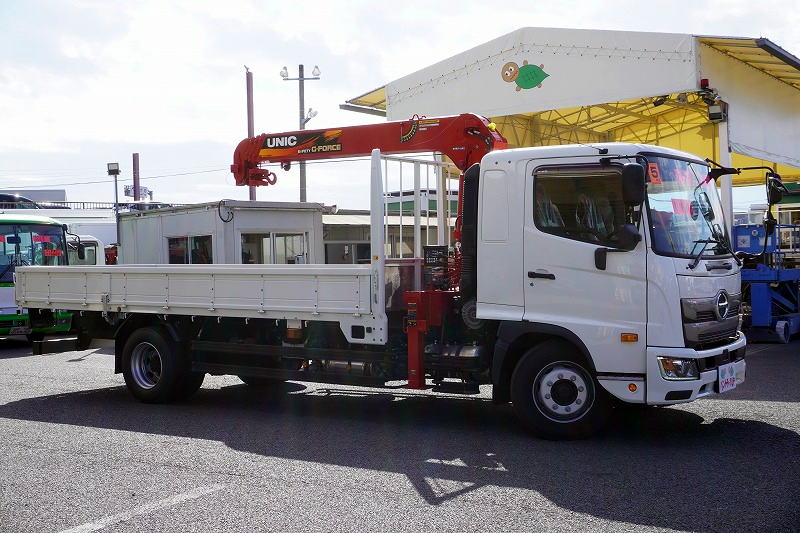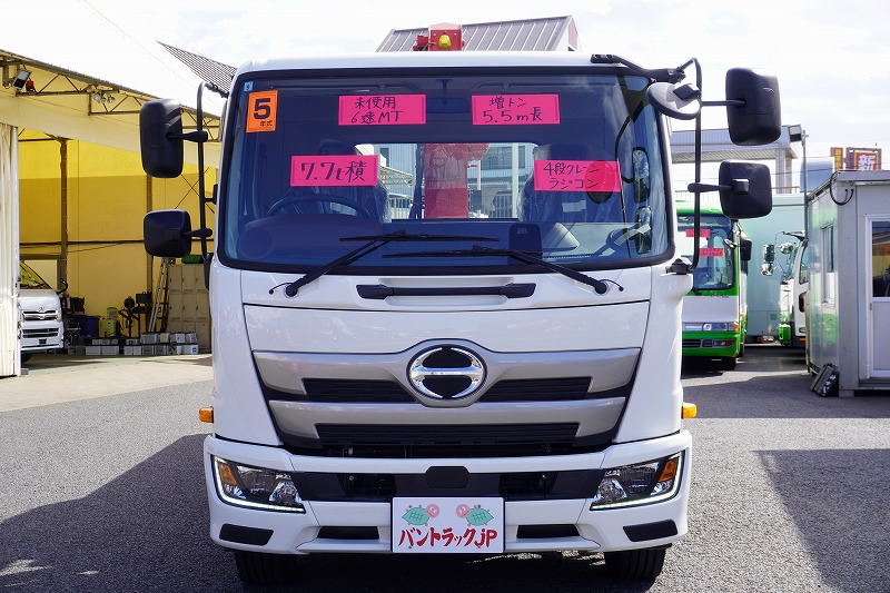 在庫No.K-0120 (未使用) レンジャー 増トン 「標準幅 ベッド付」 4段クレーン 積載7700kg 古河ユニック製 5.5m長 ラジコン フックイン 2.93t吊 差違いアウトリガー 角足 セイコーラック 坂道発進補助 オートエアコン 衝突軽減ブレーキ 車線逸脱警報 6速MT! 車検「R8年9月まで!」