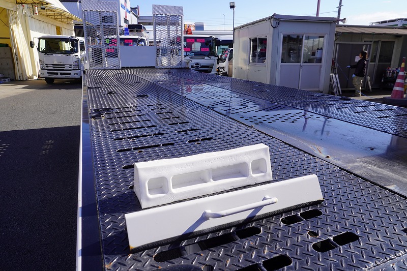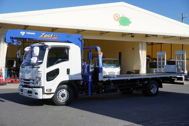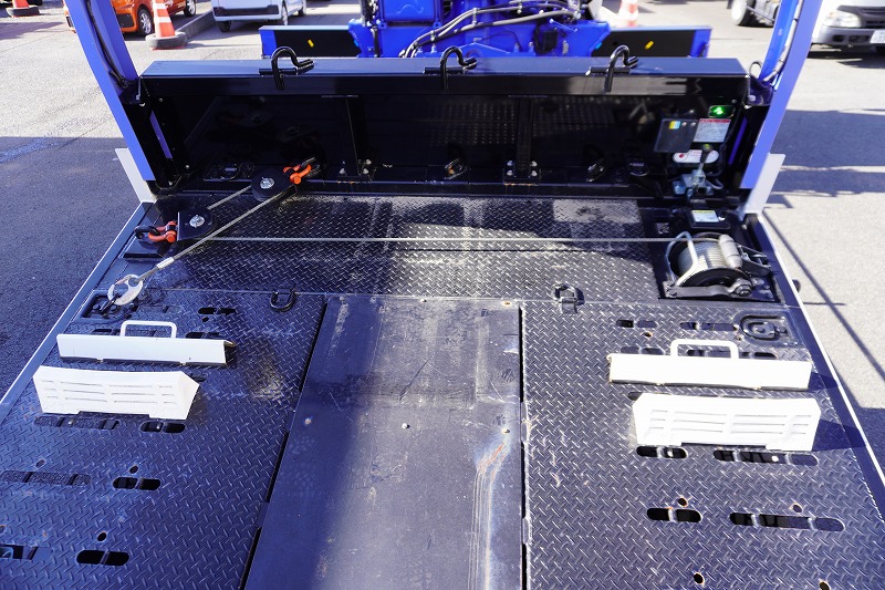 増t 標準巾 寝台付 3段ブーム セーフティローダー 車載専用 ウインチ リモコン 4.1トン積 6300mm長 内フック 床縞板 中免対応 |