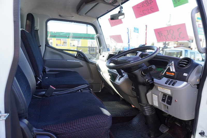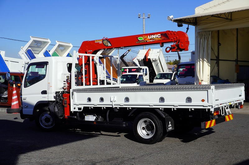 在庫No.K-0185 キャンター 「カスタム ワイドロング」 4段クレーン 積載3850kg 古河ユニック製 ラジコン フックイン 2.93t吊 セイコーラック アオリプロテクター付き LEDヘッドライト&フォグランプ 左電格ミラー オートエアコン 社外ナビ ETC2.0 メッキパーツ スマートキー 衝突軽減ブレーキ 車線逸脱警報 低走行!AT車!