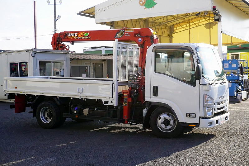 在庫No.K-0214 エルフ 「標準幅 ロング」 4段クレーン 積載2000kg 古河ユニック製 ラジコン フックイン 2.93t吊 セイコーラック 床フック3対 鳥居上部金網張り 左電格ミラー 坂道発進補助 ETC フォグランプ 6速MT!