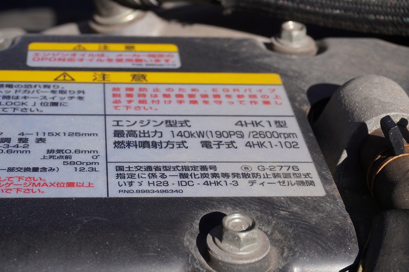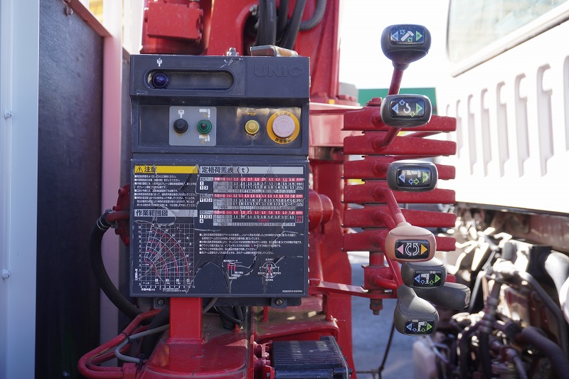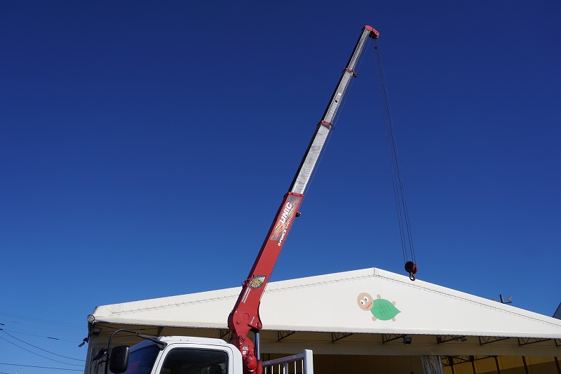 4t 標準巾 寝台無し 4段ユニック 2.5トン積 5400mm長 リモコン フック格納 2.9トン吊 EZラック フック穴 |