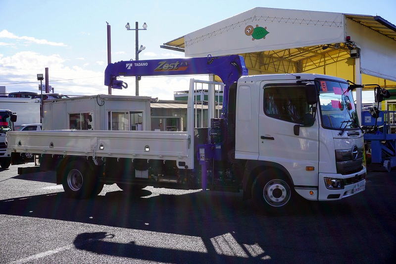 在庫No.C-0933 レンジャー 4トン 「標準幅 ベッド付き」 4段クレーン 積載2100kg タダノ製 5.1m長 ラジコン フックイン 2.93t吊 セイコーラック ロープ穴4対 LEDヘッドライト&フォグランプ 坂道発進補助 オートエアコン ETC2.0 衝突軽減ブレーキ 車線逸脱警報 6速MT!高年式!低走行!! 車検「R8年4月まで!」