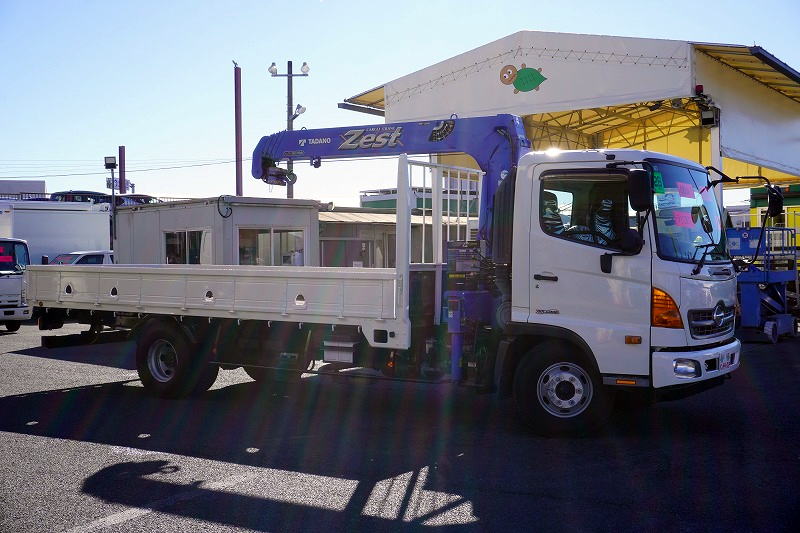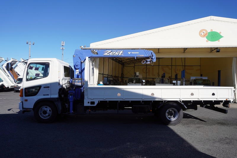 在庫No.K-0045 レンジャー 4トン 「標準幅 ベッドレス」 4段クレーン 積載2650kg タダノ製 5.4m長 ラジコン フックイン 2.93t吊 ロープ穴4対 床フック4対 鳥居下部鉄板張り ETC AT車!