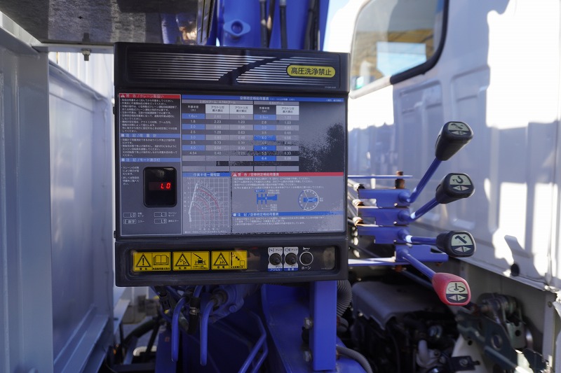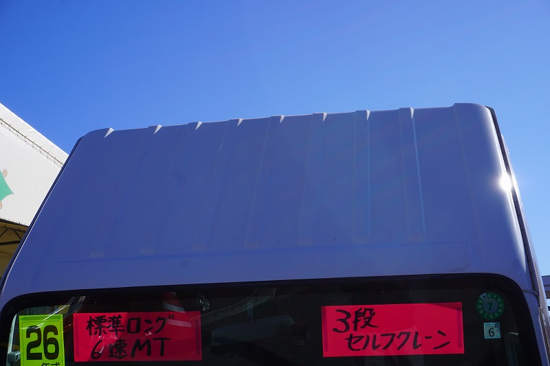 標準巾 ロング 3段ブーム 3.55トン積 ハイジャッキ リモコン フック格納 2.6トン吊 造りボデー スロープハンガー 内フック 回送仕様 |