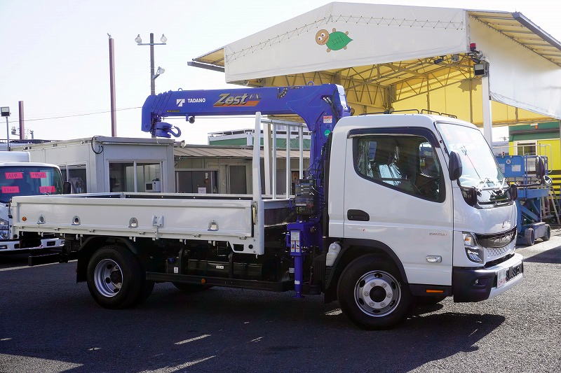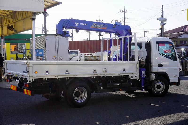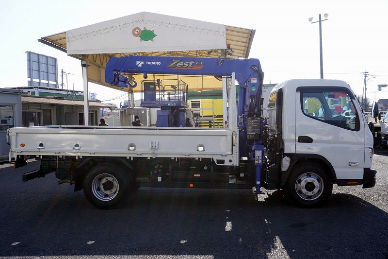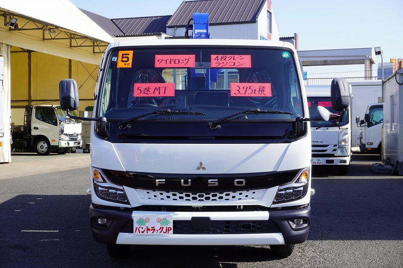 在庫No.K-0265 キャンター 「ワイドロング」 4段クレーン 積載3750kg タダノ製 ラジコン フックイン 2.63t吊 セイコーラック 荷台鉄板張り ロープ穴4対 LEDヘッドライト&フォグランプ 左電格ミラー ETC 衝突軽減ブレーキ 車線逸脱警報 高年式!低走行!5速MT! 車検「R8年6月まで!」