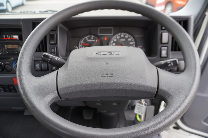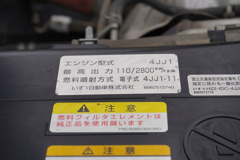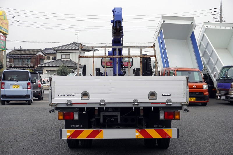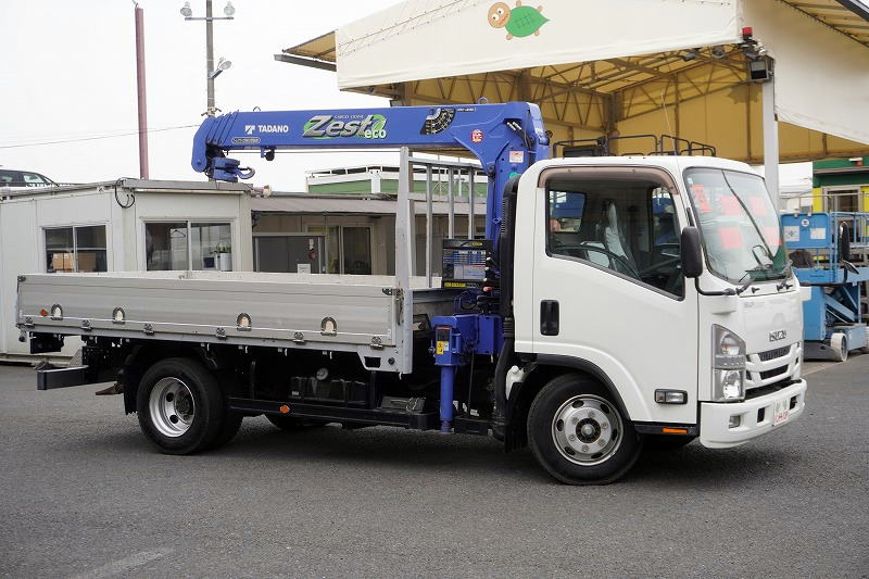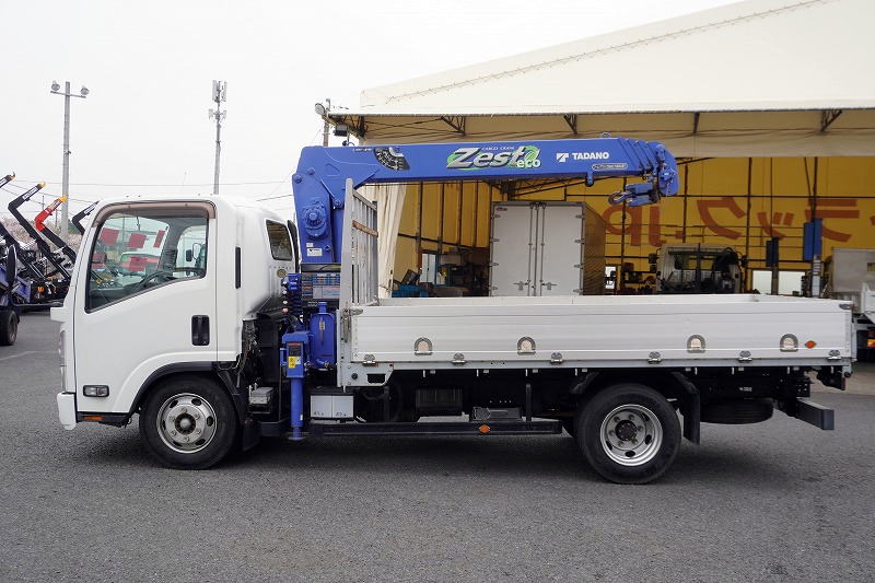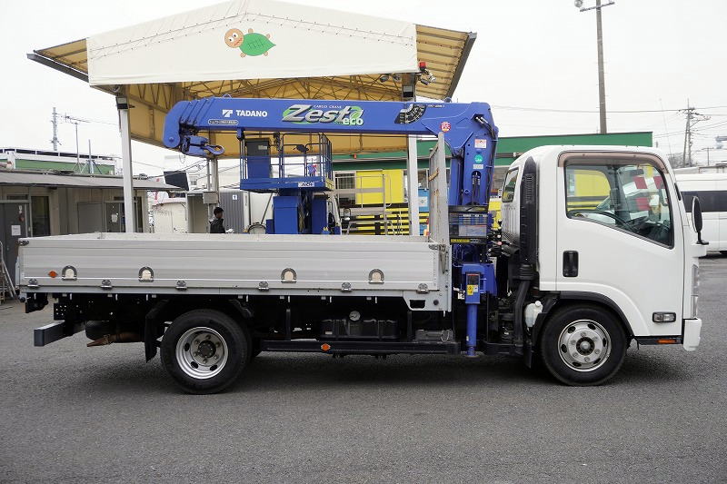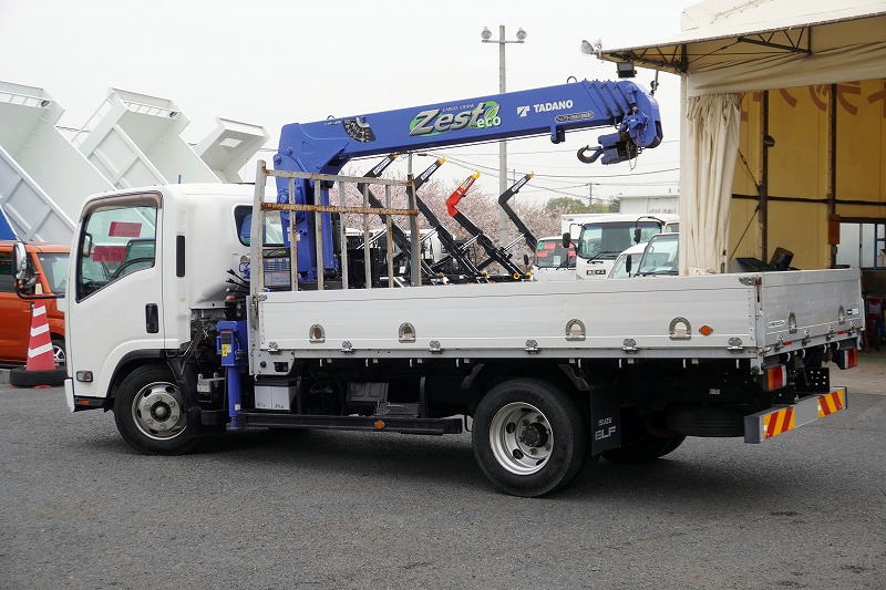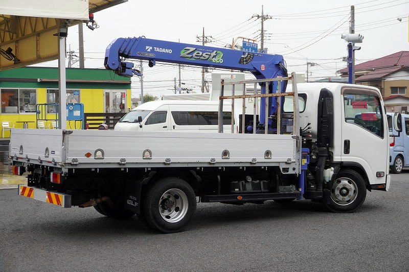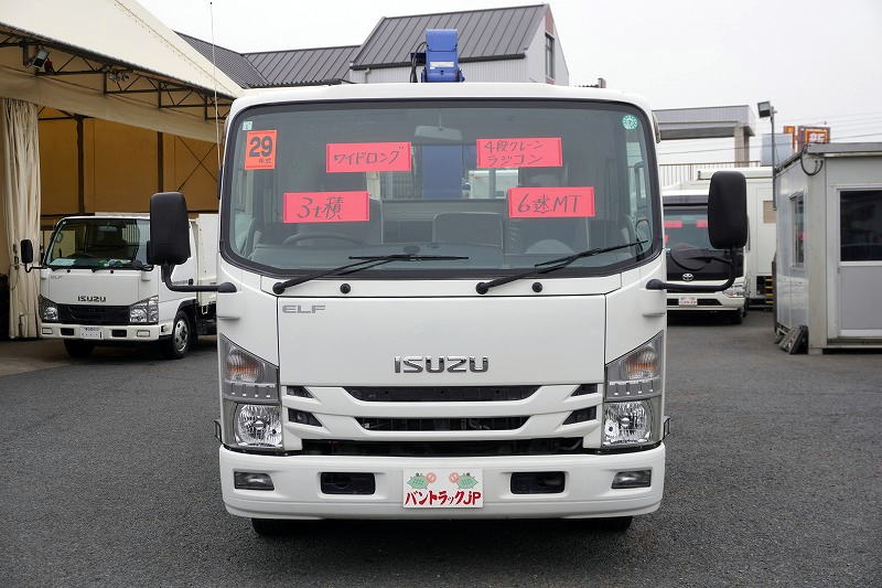 在庫No.K-0314 エルフ 「ワイドロング」 4段クレーン 積載3000kg タダノ製 アルミブロック ラジコン フックイン 2.93t吊 ロープ穴5対 床フック ETC 坂道発進補助 左電格ミラー フォグランプ 6速MT!