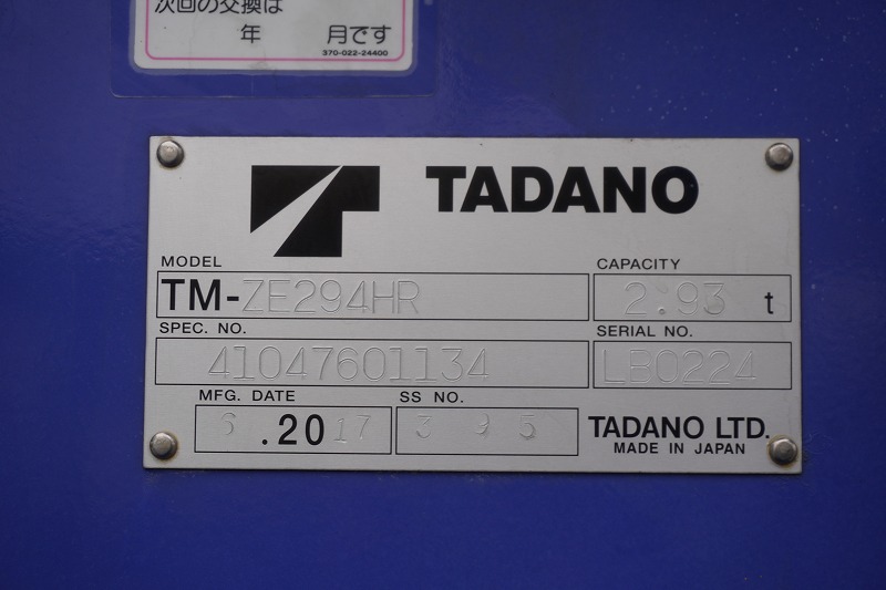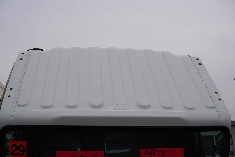 ワイド ロング 4段ブーム 3トン積 アルミ平 リモコン フック格納 2.9トン吊 鳥居縞板張り 鳥居工具箱 床鉄板張り 内フック |