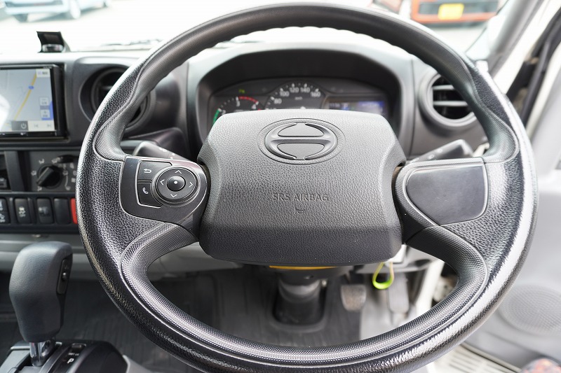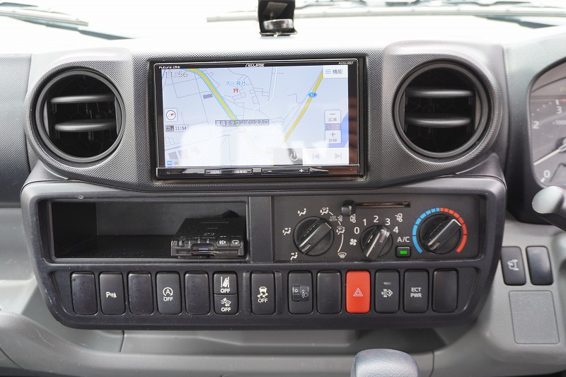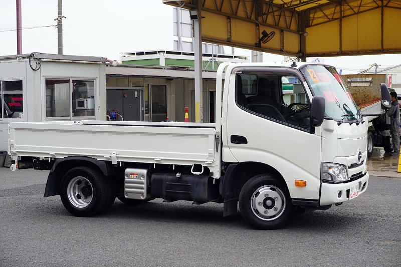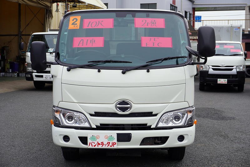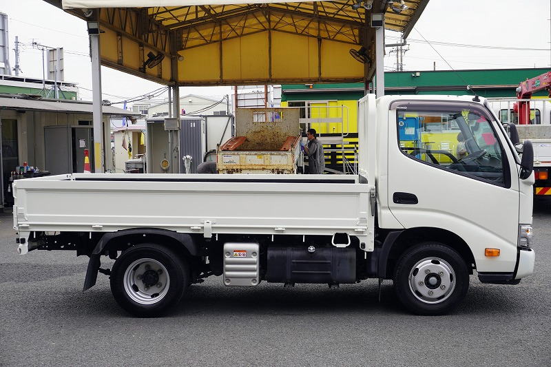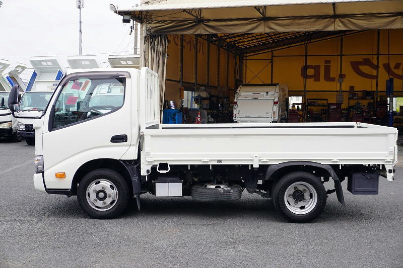 在庫No.C-0807 デュトロ 「標準幅 ショート」 平ボディー 積載2000kg 三方開 全低床 セイコーラック LEDヘッドライト 電動パーキングブレーキ クリアランスソナー 社外ナビ ETC AT車!