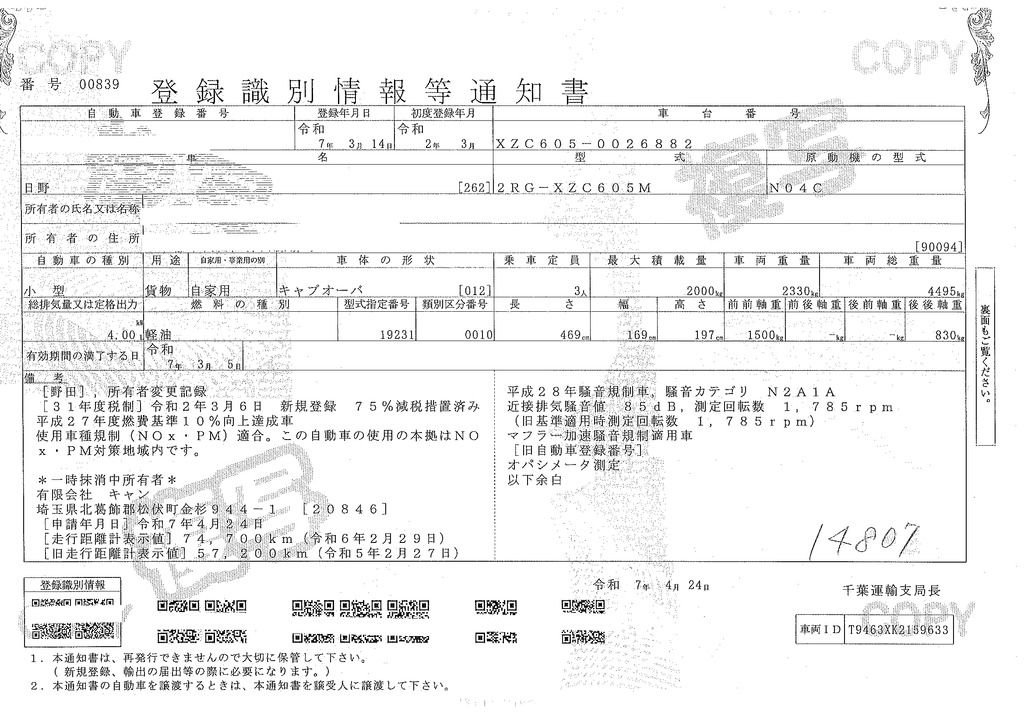 車検証上幅 |