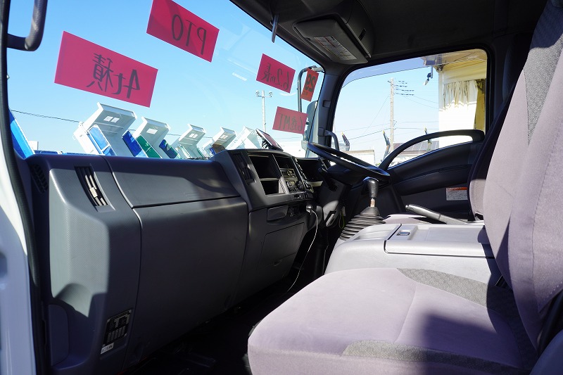 在庫No.K-0171 フォワード 4トン 「標準幅 ベッド付き」 平ボディー 積載4000kg リーフサス 6.2m長 鳥居鉄板張り&フック付 セイコーラック スタンション穴 ルーフキャリア キャブラダー 床フック5対 坂道発進補助 オートエアコン PTO付き バックカメラ ポータブルナビ ワンセグTV 6速MT!
