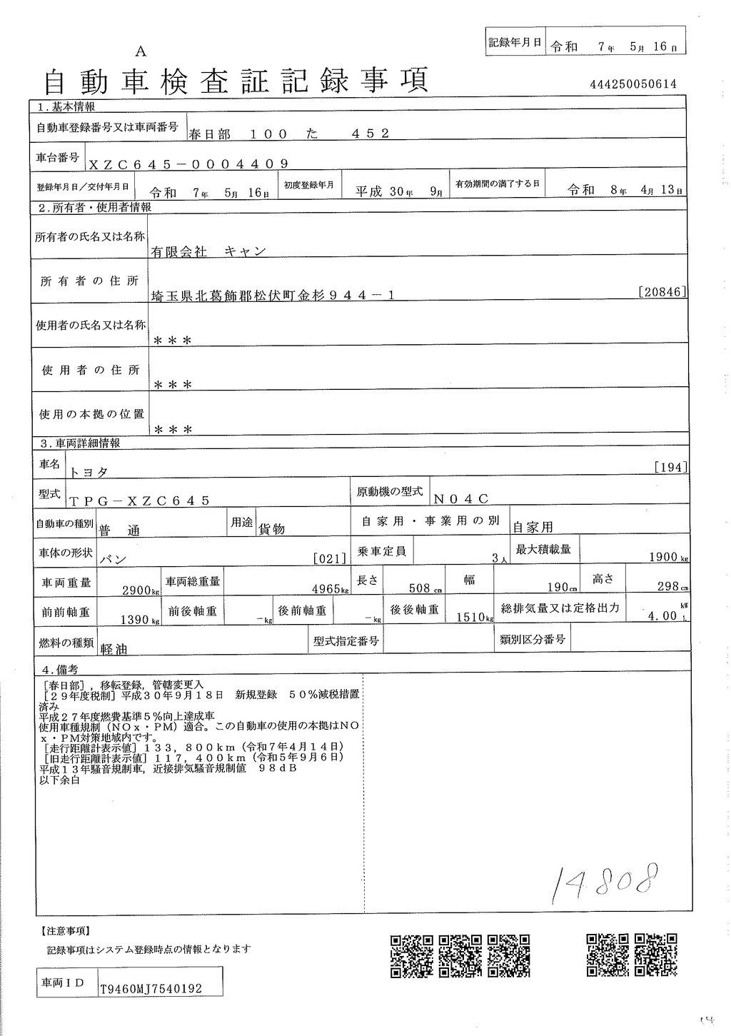 車検期限 |