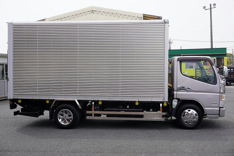 在庫No.C-0412 キャンター カスタム 「標準幅 ロング」 アルミバン 積載2000kg サイドドア 跳ね上げ式 パワーゲート ラッシング2段 荷台シマ板張り ラジコン バックカメラ 社外ナビ ETC2.0 坂道発進補助 両側電格ミラー キーレス フォグランプ メッキパーツ ステンレスサイドバンパー メッキホイールライナー 低走行!5速MT!