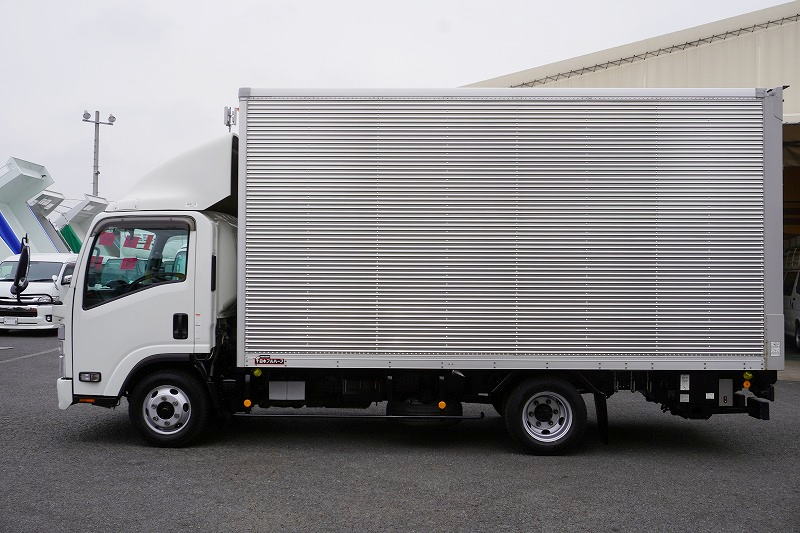 在庫No.C-0784 エルフ 「ワイドロング」 アルミバン 積載2000kg 手動跳ね上げ式パワーゲート ラッシング3段 導風板 高箱 左電格ミラー バックカメラ 社外ナビ ETC2.0 フォグランプ 日本フルハーフ製 AT車!
