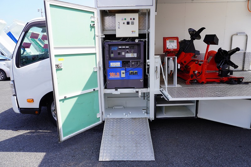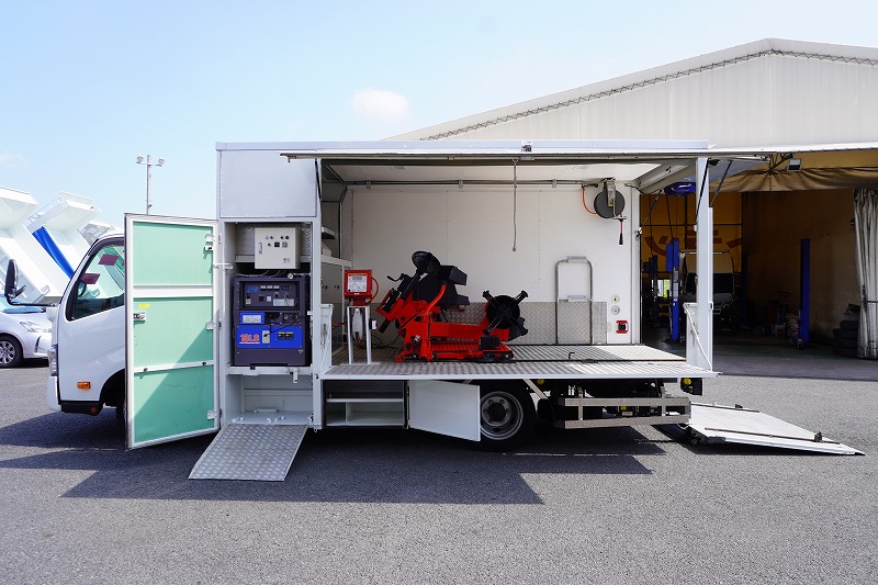 ハイグレード ワイドロング タイヤサービスカー 0.5トン積 サイド扉 跳上パワーゲート 床縞板張り 左箱側面跳上式 |