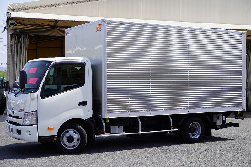 在庫No.C-0827 ダイナ 「ワイドロング」 アルミバン 積載3000kg 跳ね上げ式 パワーゲート ラッシング2段 ラジコン バックカメラ 社外ナビ ETC2.0 左電格ミラー 坂道発進補助 スマートキー 電動パーキングブレーキ クリアランスソナー 衝突軽減ブレーキ 車線逸脱警報 6速MT!高年式!低走行!!
