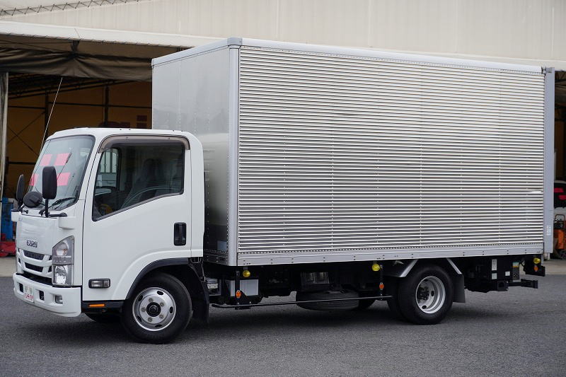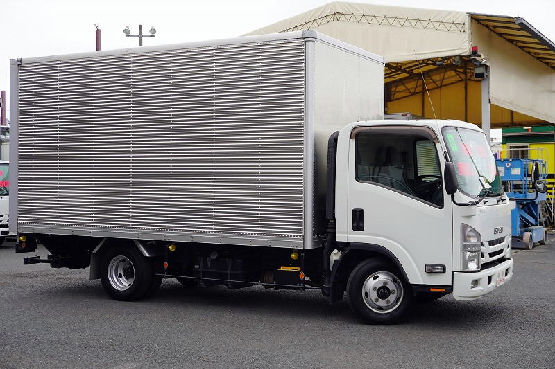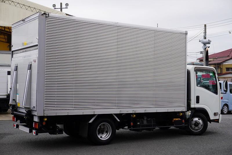 在庫No.C-0835 エルフ 「ワイドロング」 アルミバン 積載2000kg 跳ね上げ式 パワーゲート ラッシング3段 荷台鉄板張り バックカメラ ETC2.0 坂道発進補助 左電格ミラー 日本フルハーフ製 6速MT!