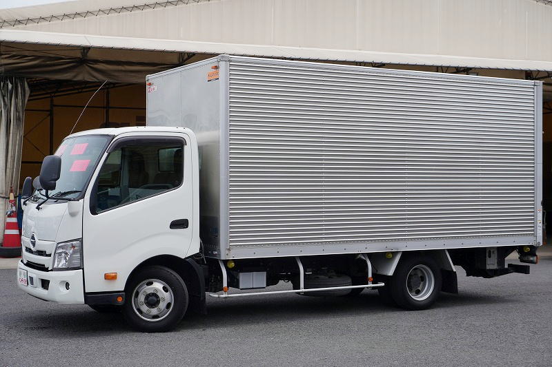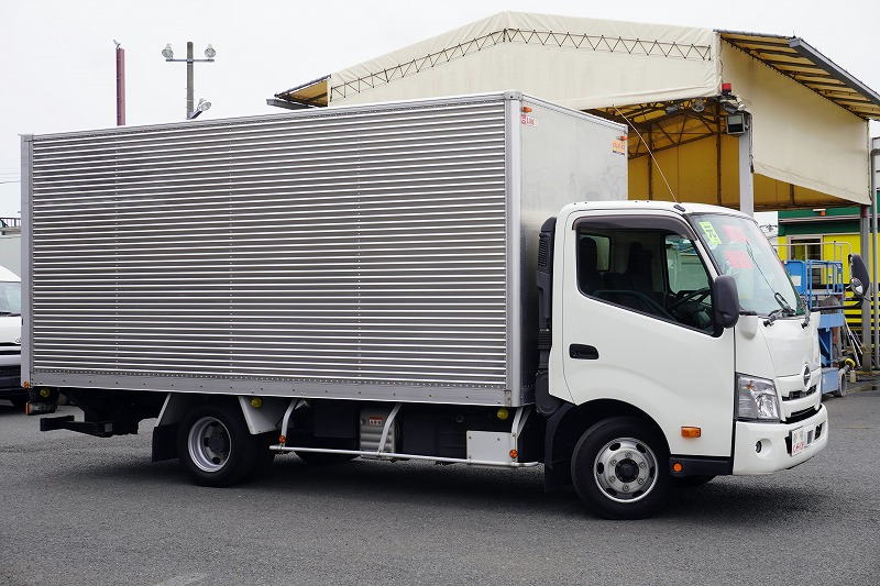 在庫No.C-0840 デュトロ 「ワイドロング」 アルミバン 積載3000kg 跳ね上げ式 パワーゲート ラッシング1段 バックカメラ ETC2.0 左電格ミラー 坂道発進補助 LEDヘッドライト&フォグランプ クリアランスソナー 衝突軽減ブレーキ 車線逸脱警報 トランテックス製 6速MT!