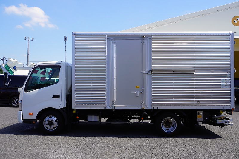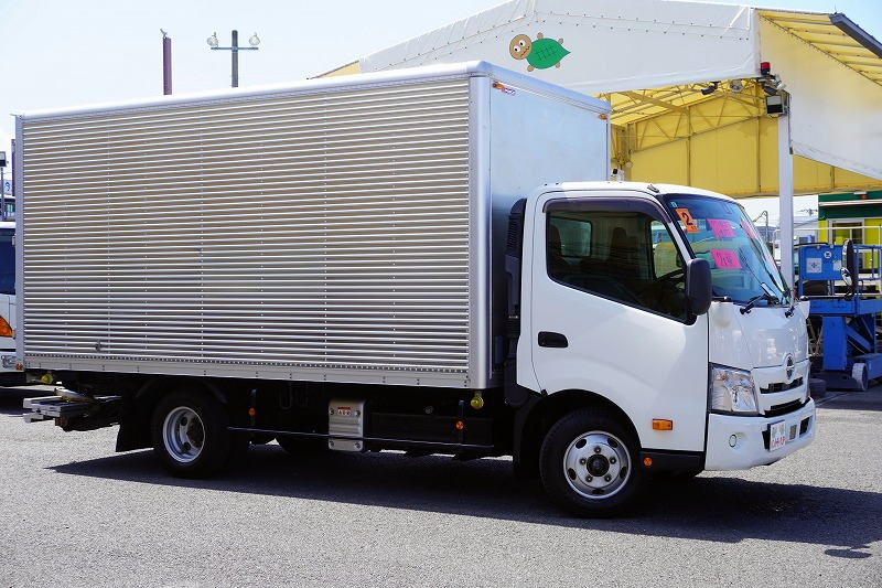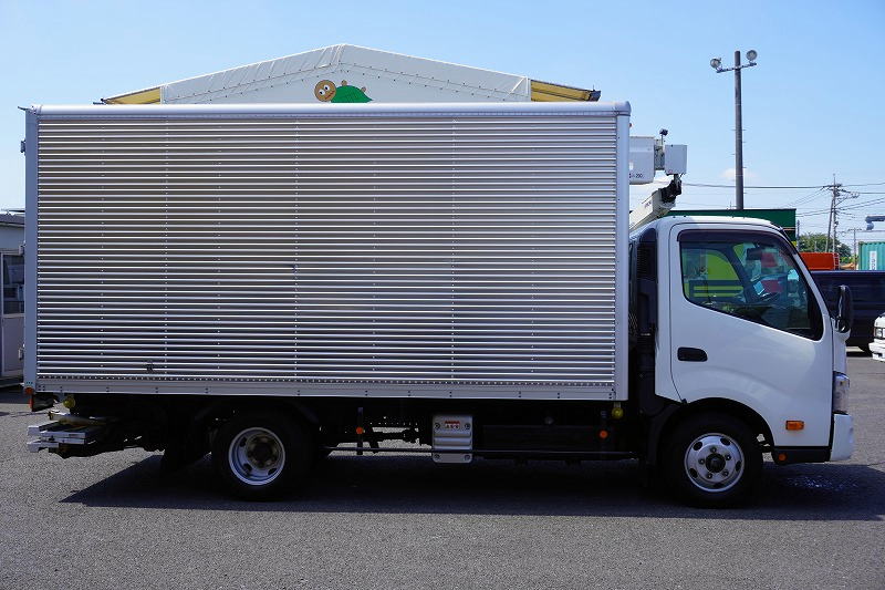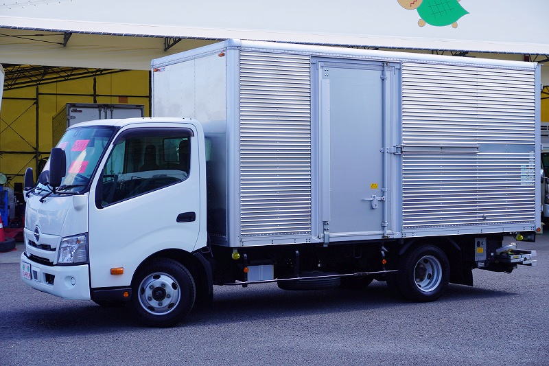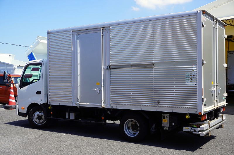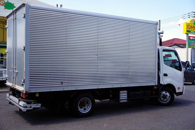 在庫No.C-0973 デュトロ 「ワイドロング」 アルミバン 積載2000kg 格納パワーゲート サイドドア ラッシング2段 壁面フック バックカメラ 社外ナビ ETC LEDヘッドライト 左電格ミラー 90度ストッパー 電動パーキングブレーキ クリアランスソナー 衝突軽減ブレーキ 車線逸脱警報 6速MT! 車検「R8年3月まで!」