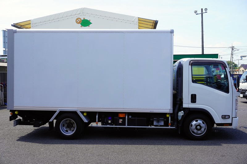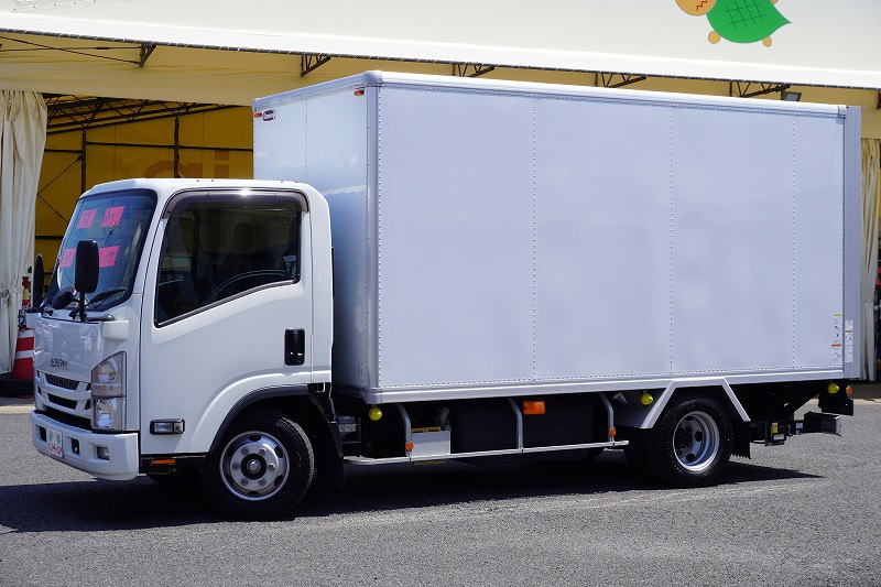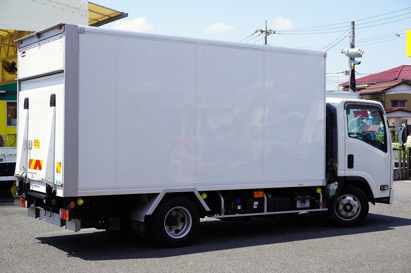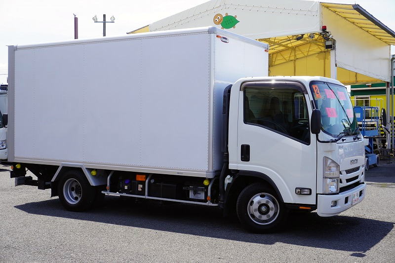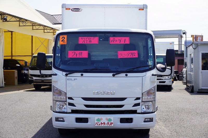 在庫No.C-0977 エルフ 「ワイドロング」 パネルバン 積載2000kg 跳ね上げ式 パワーゲート ラッシング2段 左電格ミラー 坂道発進補助 バックカメラ ETC2.0 オートエアコン フォグランプ ハイブリッド 北村製 AT車!
