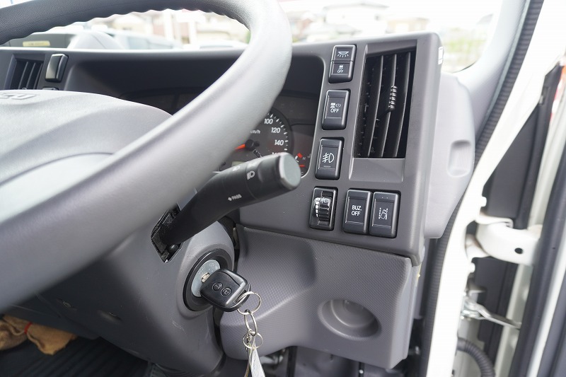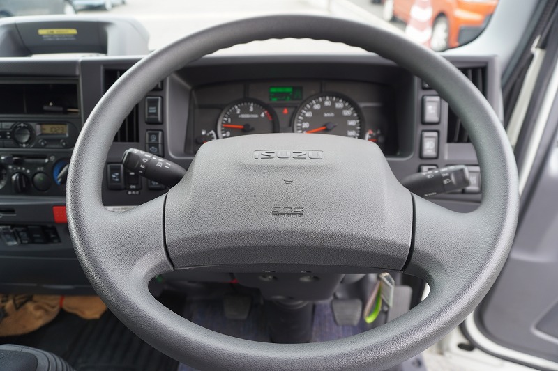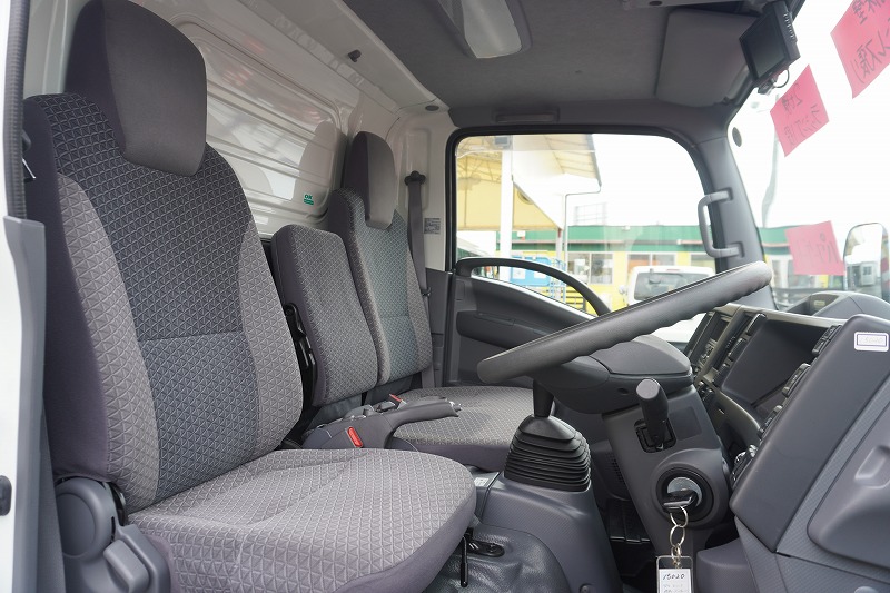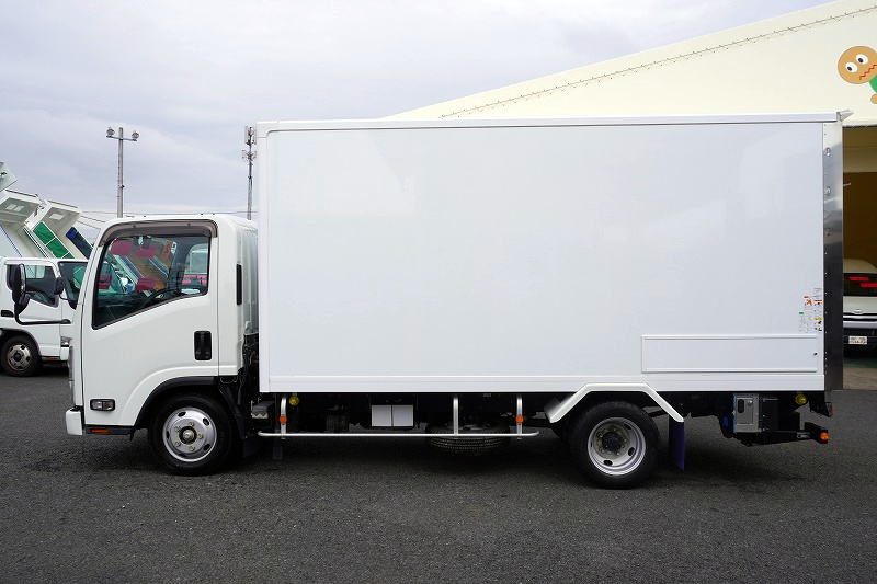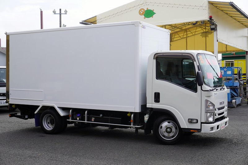 在庫No.K-0020 エルフ 「標準幅 ロング」 パネルバン 積載2000kg 跳ね上げ式 大型パワーゲート付き 荷台、箱内壁面ステンレス張り ラッシング1段 バックカメラ 左電格ミラー フォグランプ 衝突軽減ブレーキ 車線逸脱警報 東プレ製 給食配送車仕様!6速MT!希少車!!