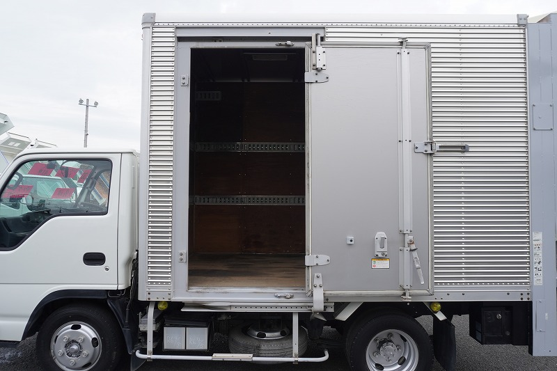 在庫No.K-0030 エルフ 10尺 アルミバン 積載1900kg サイドドア 跳ね上げ式 垂直パワーゲート ラッシング2段 通気口 バックカメラ ETC フォグランプ 全低床 AT車!準中型(5トン限定)免許対応! 車検「R8年8月まで!」