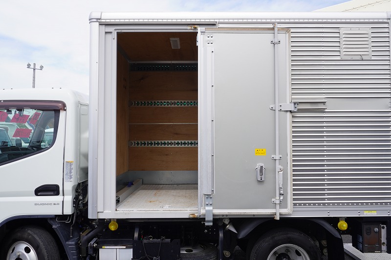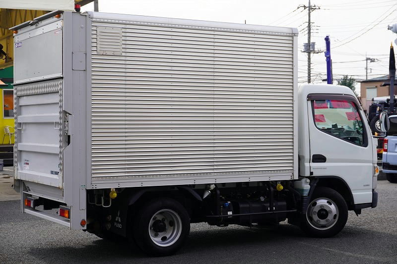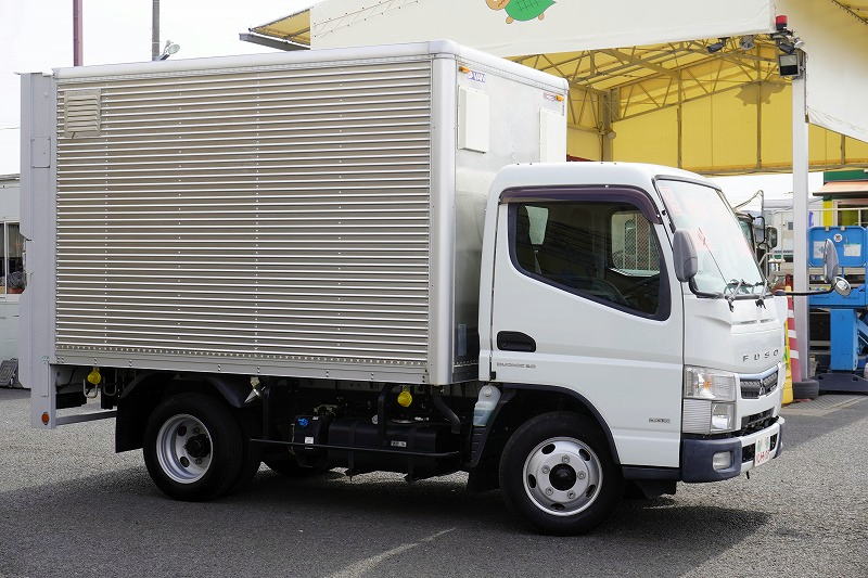 在庫No.K-0032 キャンター 10尺 アルミバン 積載2000kg サイドドア 跳ね上げ式 垂直パワーゲート ラッシング3段 荷台シマ板張り 床フック4対 バックカメラ ETC2.0 左電格ミラー 車線逸脱警報 フォグランプ 低走行!AT車!