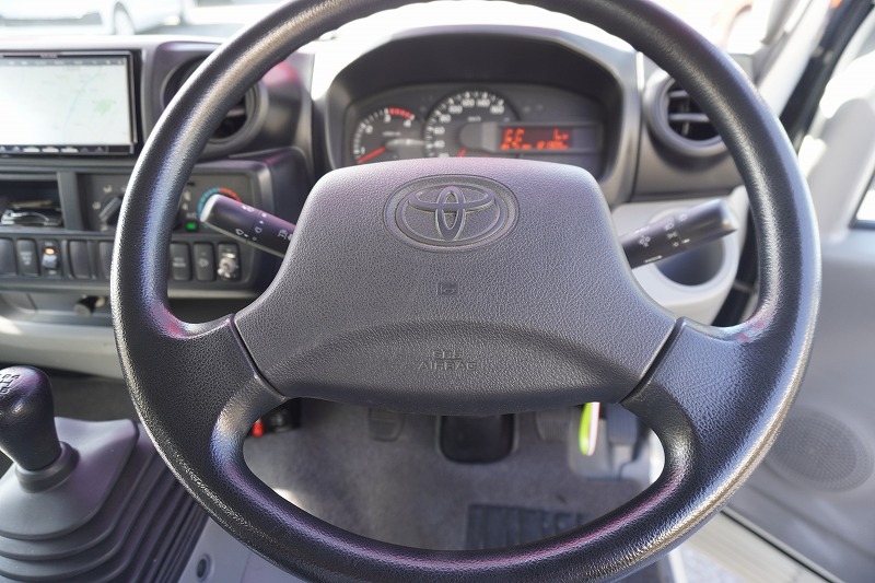 在庫No.K-0066 トヨエース 10尺 アルミバン 積載2000kg サイドドア 跳ね上げ式 垂直パワーゲート ラッシング1段 箱内当て物付き バックカメラ ETC 社外ナビ 全低床 北村製 ワンオーナー!5速MT!