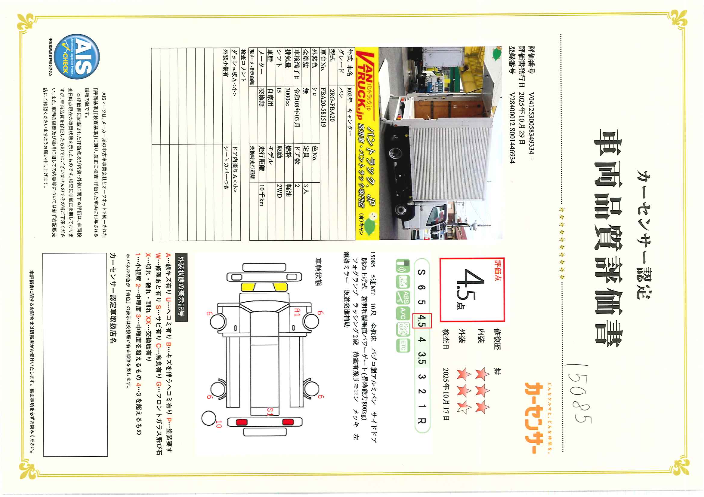 在庫No.K-0085 キャンター 10尺 アルミバン 積載1950kg 高箱 サイドドア 跳ね上げ式 垂直パワーゲート ラッシング2段 バックカメラ ETC 左電格ミラー フォグランプ 衝突軽減ブレーキ 車線逸脱警報 メッキパーツ 内寸高2.33m 全低床 低走行!5速MT!準中型(5トン限定)免許対応! 車検「R8年3月まで!」