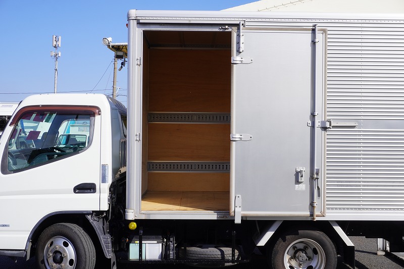 在庫No.C-0936 キャンター 「標準幅 セミロング」 アルミバン 積載2000kg サイドドア 跳ね上げ式 垂直パワーゲート ラッシング2段 バックカメラ 左電格ミラー 北村製 5速MT! 車検「R8年4月まで!」