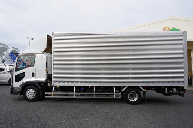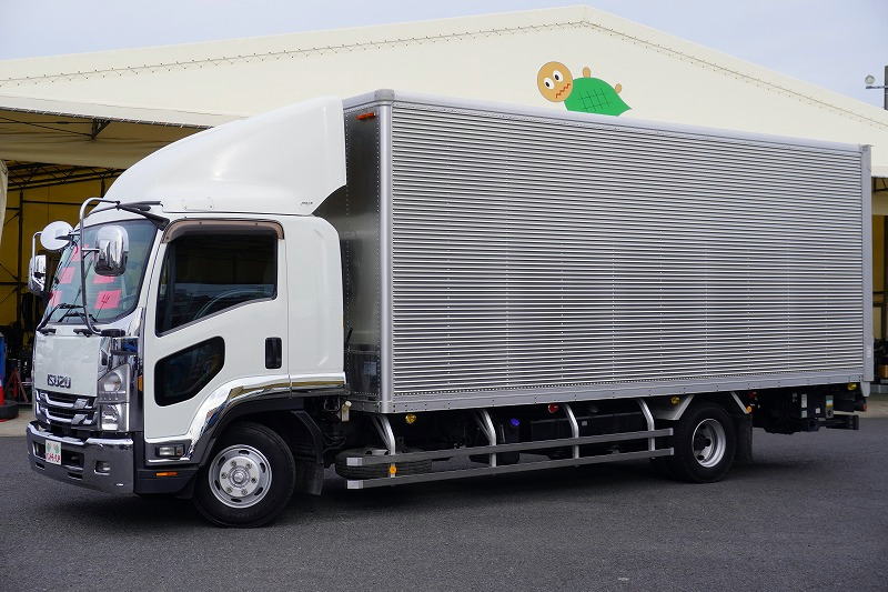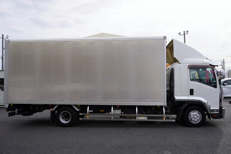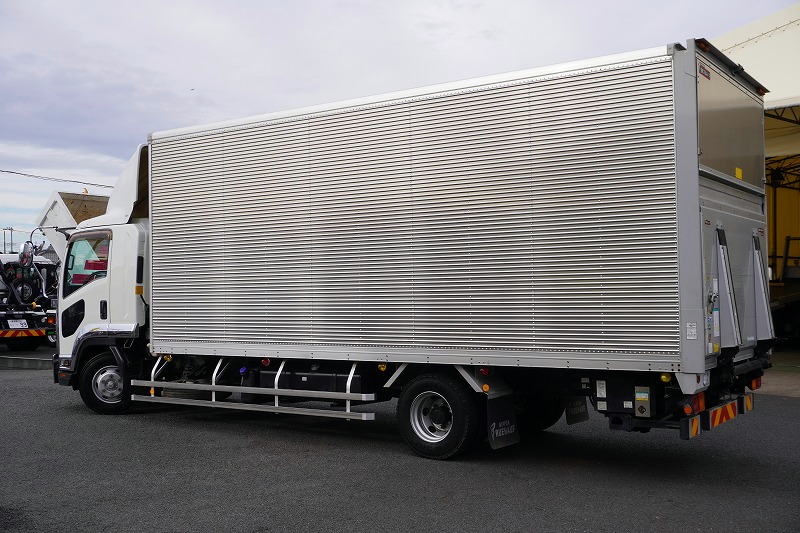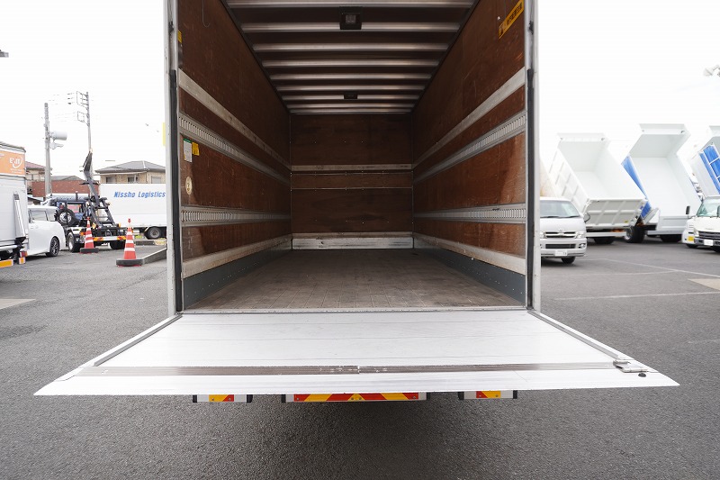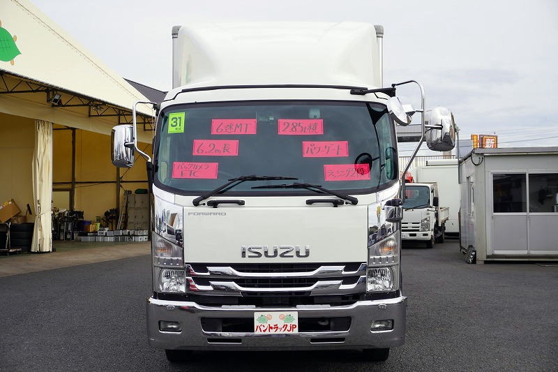 在庫No.K-0138 フォワード 4トン 「標準幅 ベッド付き」 アルミバン 積載2850kg リーフサス 6.2m長 跳ね上げ式 パワーゲート ラッシング2段 導風板 バックカメラ ETC 坂道発進補助 HIDヘッドライト メッキパーツ 日本フルハーフ製 6速MT!