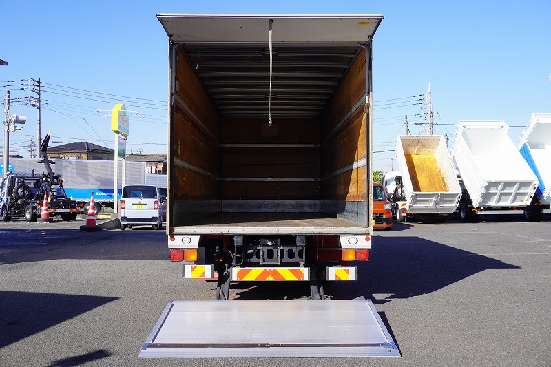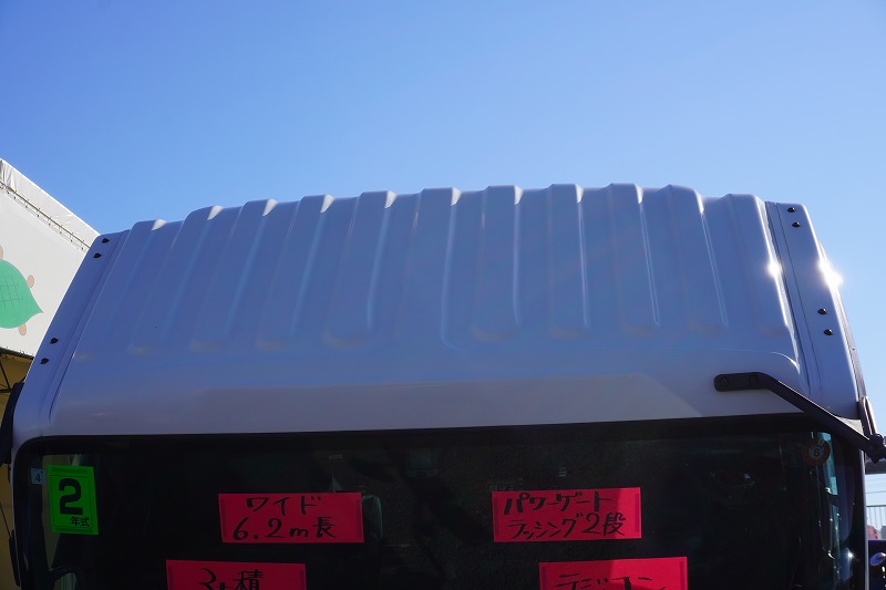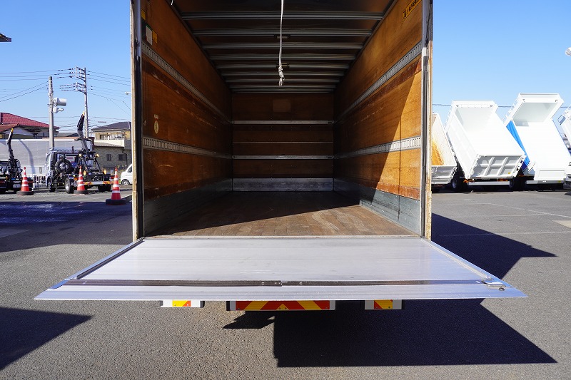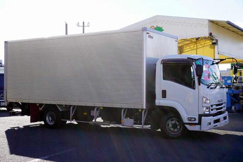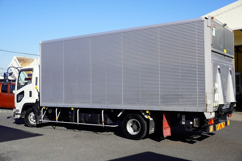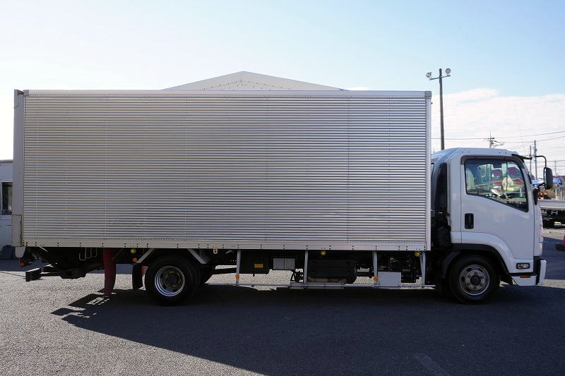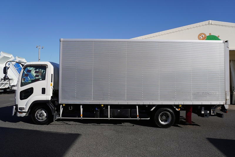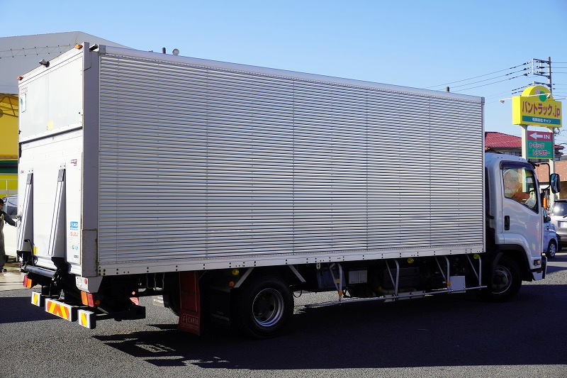 在庫No.K-0152 フォワード 4トン 「ワイド ベッドレス」 アルミバン 積載3000kg リーフサス 6.2m長 跳ね上げ式 パワーゲート ラジコン ラッシング2段 バックカメラ ETC2.0 坂道発進補助 HIDヘッドライト 日本フルハーフ製 6速MT!