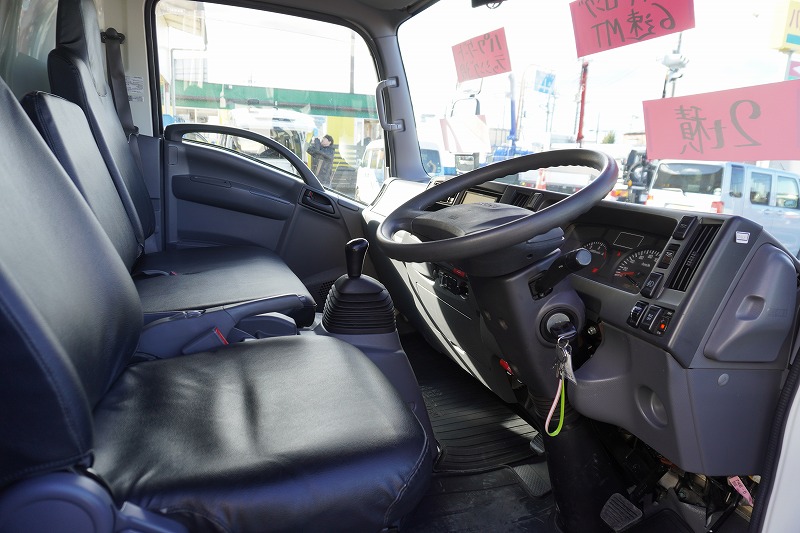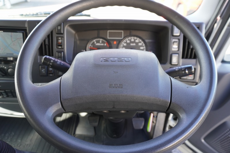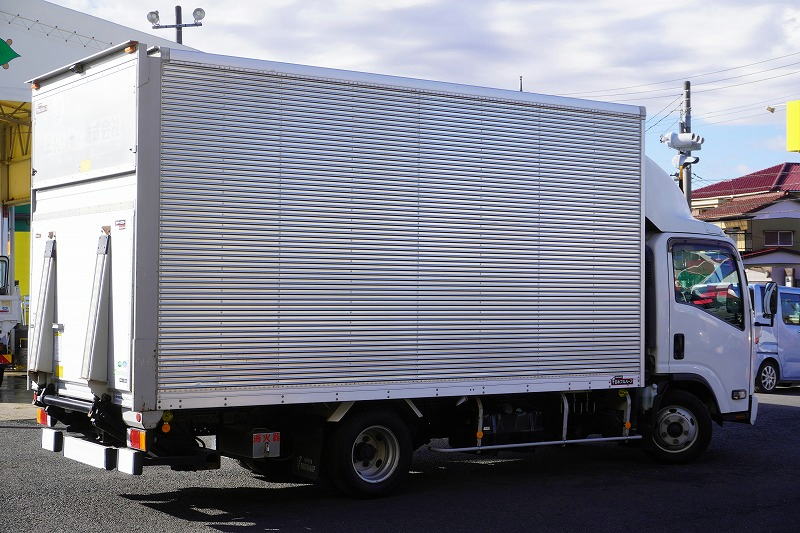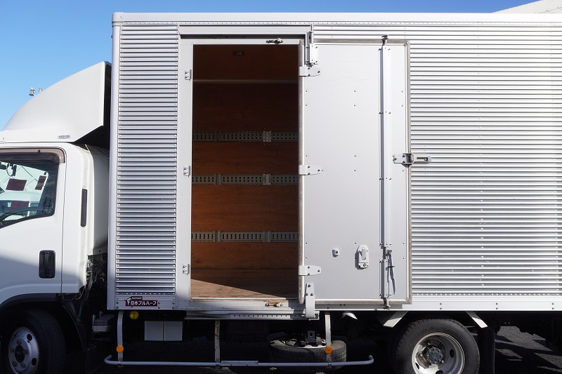 在庫No.K-0163 エルフ 「ワイドロング」 アルミバン 積載2000kg サイドドア 手動跳ね上げ式パワーゲート ラッシング3段 導風板 左電格ミラー 坂道発進補助 バックカメラ 社外ナビ ETC フォグランプ 日本フルハーフ製 6速MT! 車検「R8年7月まで!」