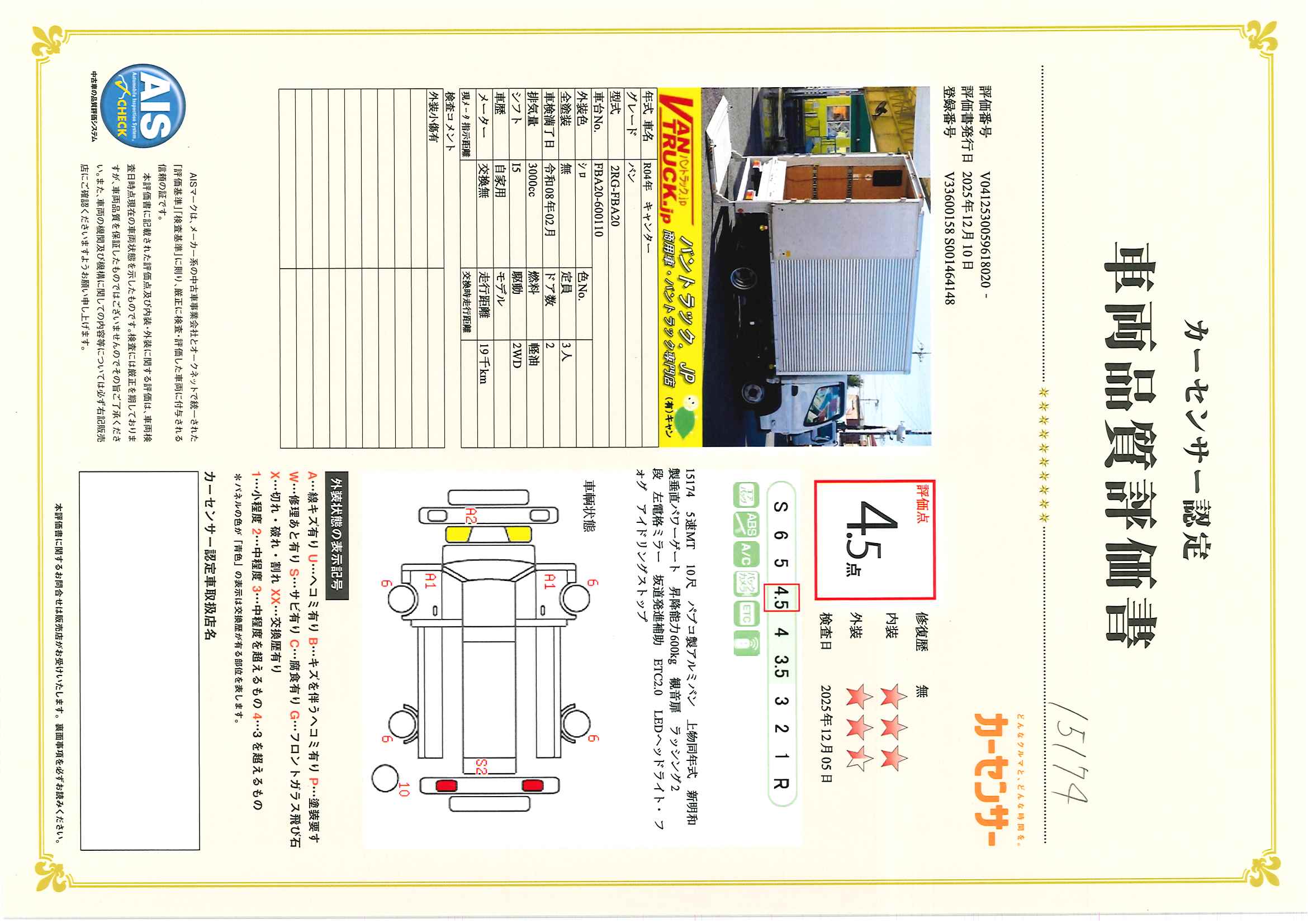 在庫No.K-0174 キャンター 10尺 アルミバン 積載2000kg リア観音扉 垂直パワーゲート ラッシング2段 左電格ミラー 坂道発進補助 バックカメラ ETC2.0 LEDヘッドライト&フォグランプ スマートキー 衝突軽減ブレーキ 車線逸脱警報 パブコ製 5速MT!準中型(5トン限定)免許対応! 車検「R8年2月まで!」