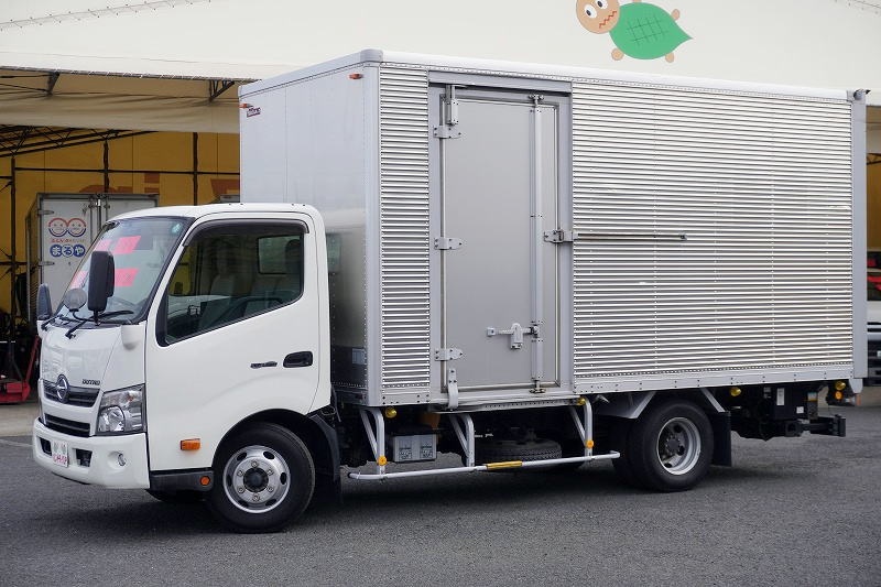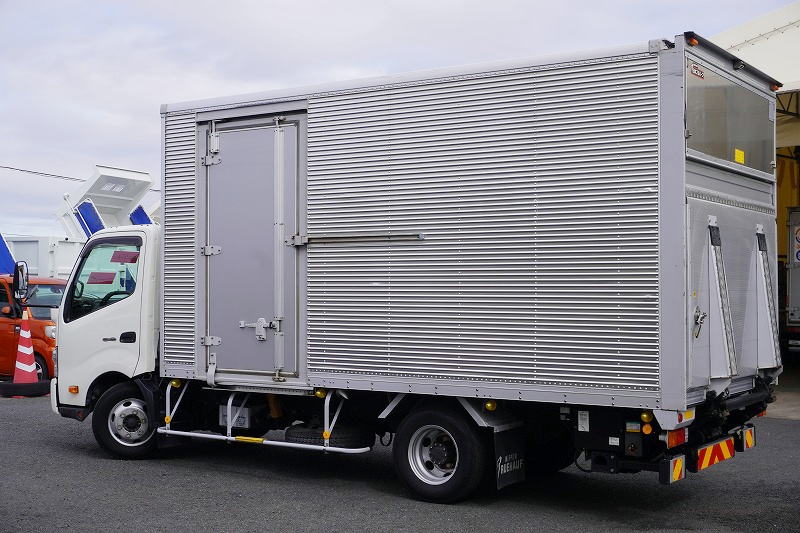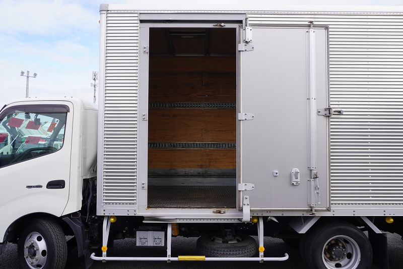 在庫No.K-0287 デュトロ 「ワイドロング」 アルミバン 積載2950kg サイドドア 跳ね上げ式 パワーゲート ラッシング2段 荷台シマ板張り バックカメラ ETC 左電格ミラー 坂道発進補助 日本フルハーフ製 6速MT! 車検「R8年6月まで!」