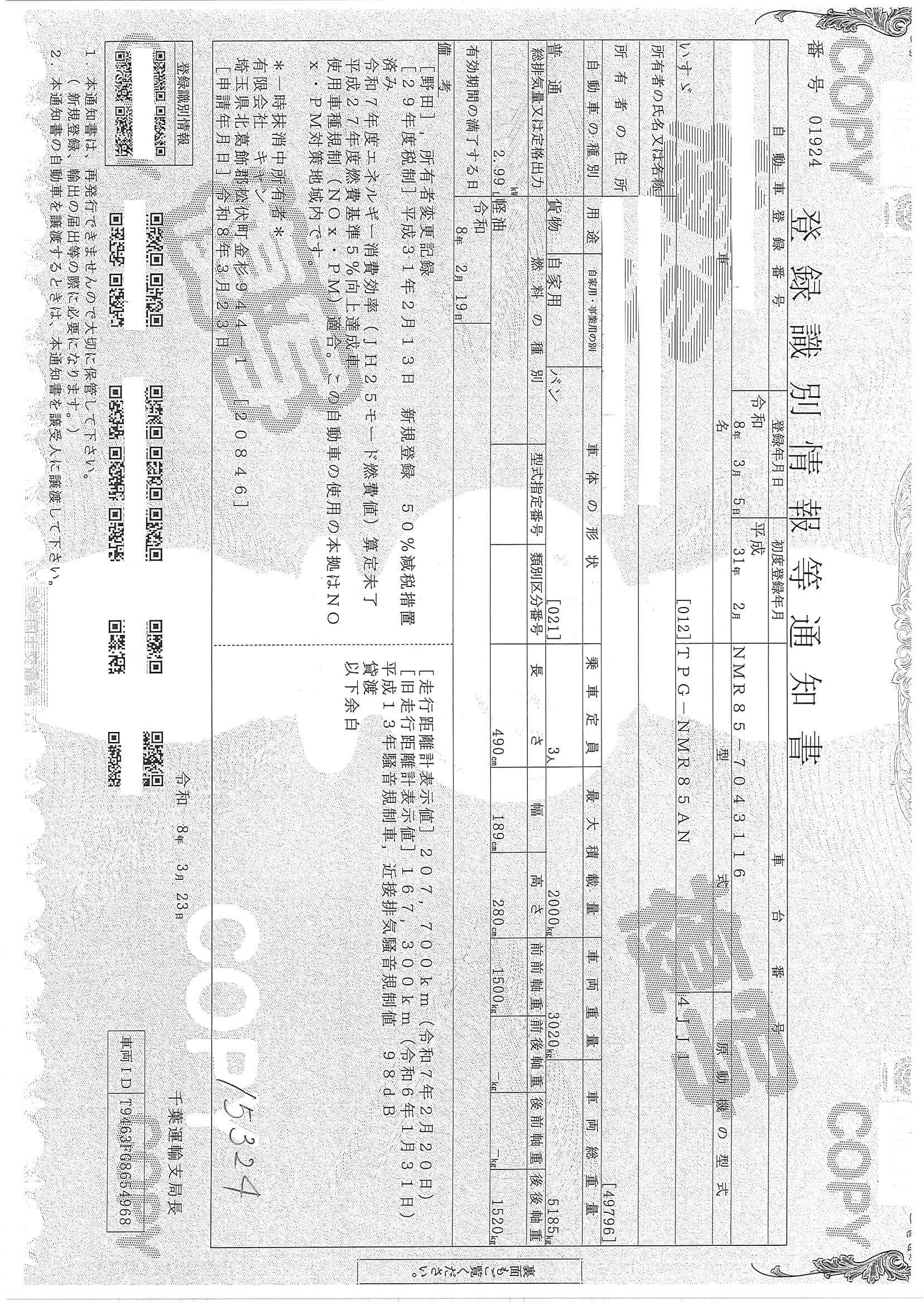 当店が把握できる車検証の表記より