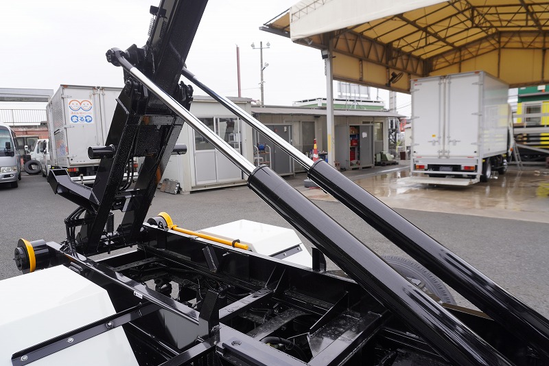 在庫No.C-0742 (未使用) デュトロ 「標準幅」 アームロール 新明和製 積載3000kg ツインシリンダー キャブバックステップ スマートキー 両側電格ミラー ミラーヒーター 坂道発進補助 ETC2.0 ルームミラー型バックカメラ クリアランスソナー LEDヘッドライト&フォグランプ 衝突軽減ブレーキ 車線逸脱警報 メッキパーツ 6速MT! 車検「R9年3月まで!」