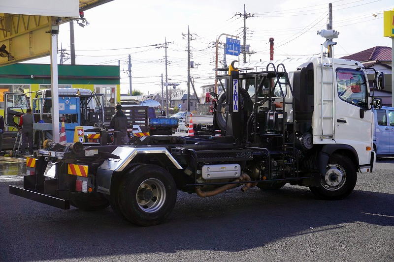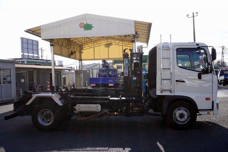 在庫No.K-0192 レンジャー 4トン 「4WD ベッド付き」 アームロール 新明和製 積載3050kg ツインシリンダー キャブバックステップ 網工具入れ 左右キャブラダー 坂道発進補助 オートエアコン LEDヘッドライト フォグランプ 衝突軽減ブレーキ 車線逸脱警報 6速MT!
