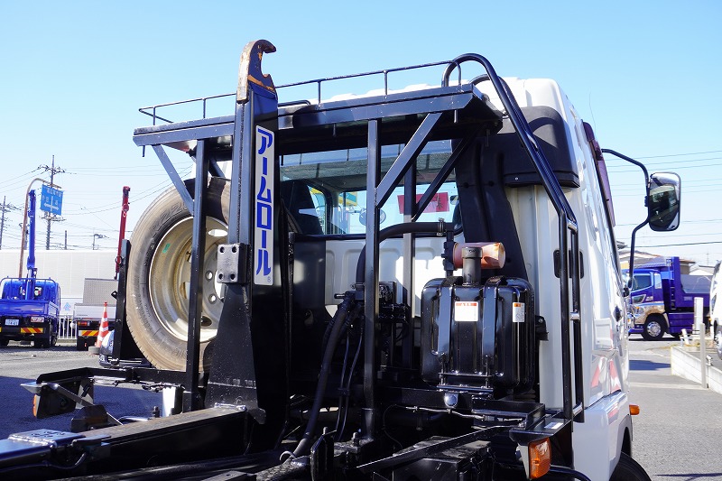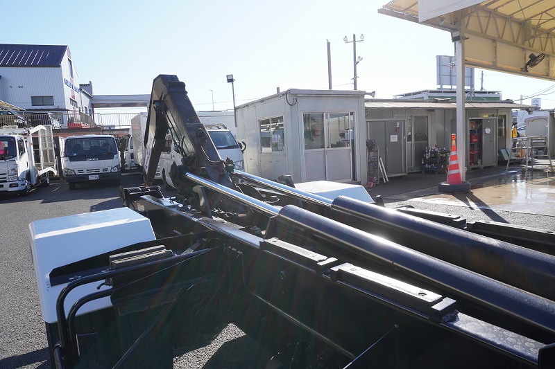 在庫No.K-0231 ファイター 増トン 「ベッド付き」 アームロール 新明和製 積載8000kg ツインシリンダー キャブバックステップ メッキパーツ 坂道発進補助 ETC 6速MT!