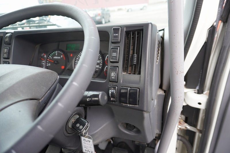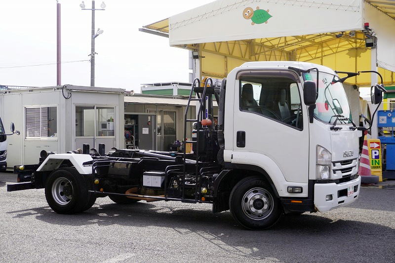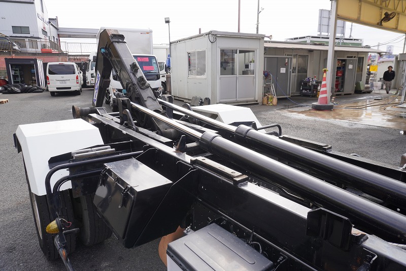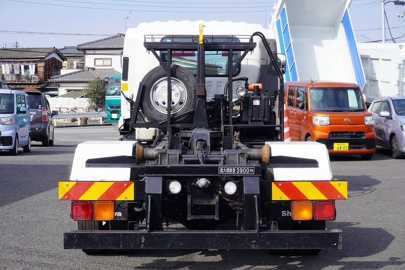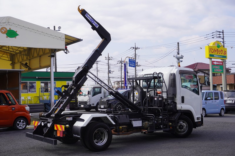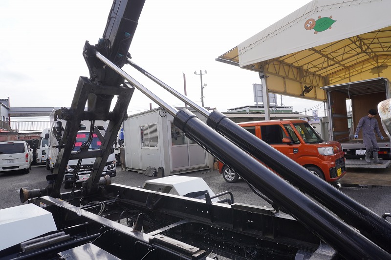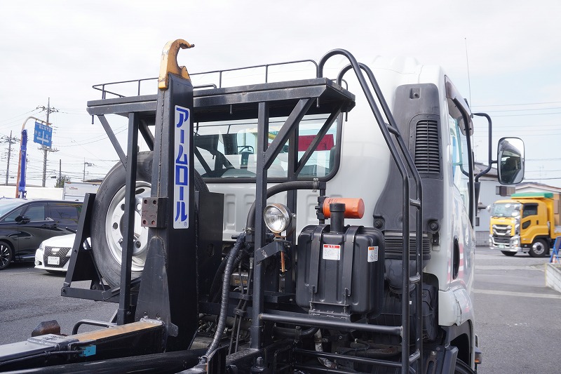 在庫No.K-0277 フォワード 4トン 「ベッドレス」 アームロール 新明和製 積載3900kg ツインシリンダー キャブバックステップ 網工具入れ フォグランプ 坂道発進補助 社外ナビ ETC2.0 6速MT!